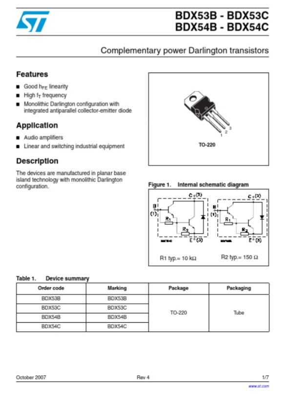 ترانزیستور دارلینگتون BDX53C ساخت ST