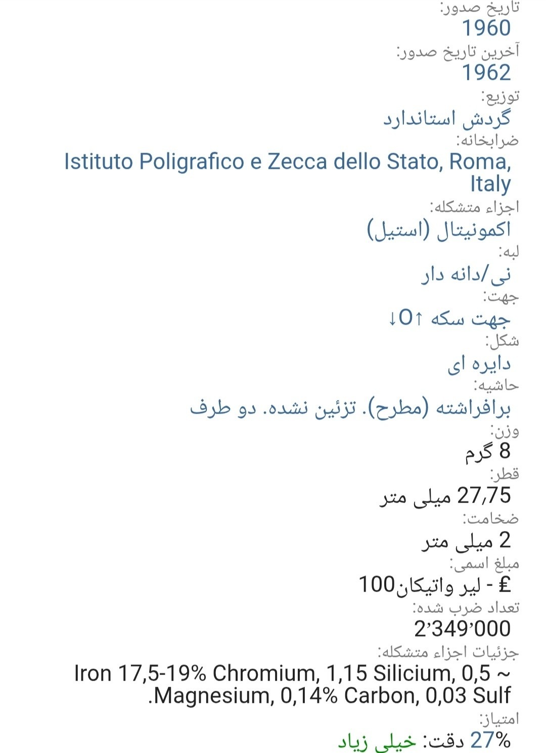 اسکن خود سکه می باشد از بعضی سکه تعداد هست برای انتخاب دوستان به صورت جداگانه در فروشگاه چیده شد اسکن ارائه شده از کالا ملاک خرید قرار دهید در تصاویر دوم سوم چهارم توضیحات کامل هست از ابعاد وزن قطر کالادر خرید خود دقت کنید