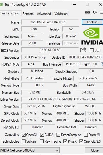 گرافیک 512 مگ 8400GS XFX توضیحات