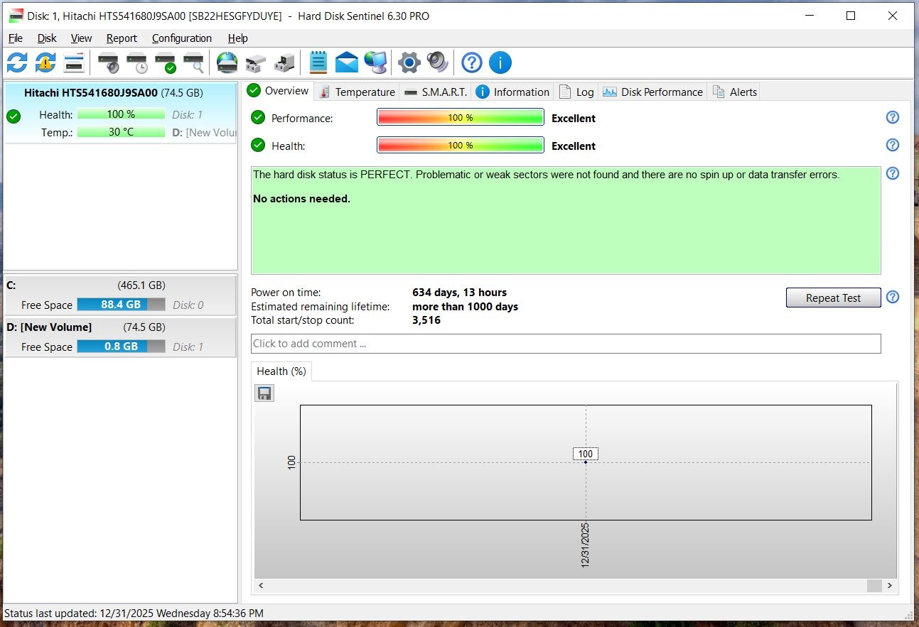 80 گیگ هیتاچی 2.5 اینچی ساتا سلامت 100