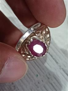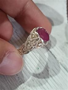7 گرم نقره 925 با کیفیت و یک عدد نگین نیمه شفاف یاقوت احتمالا برمه معدنی دارای ذغال