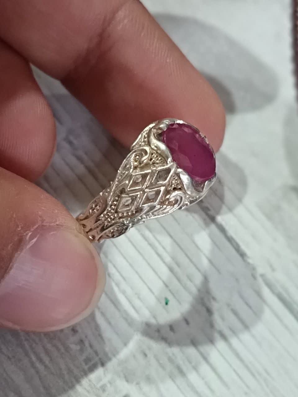 انگشتر نقره یاقوت صورتی
