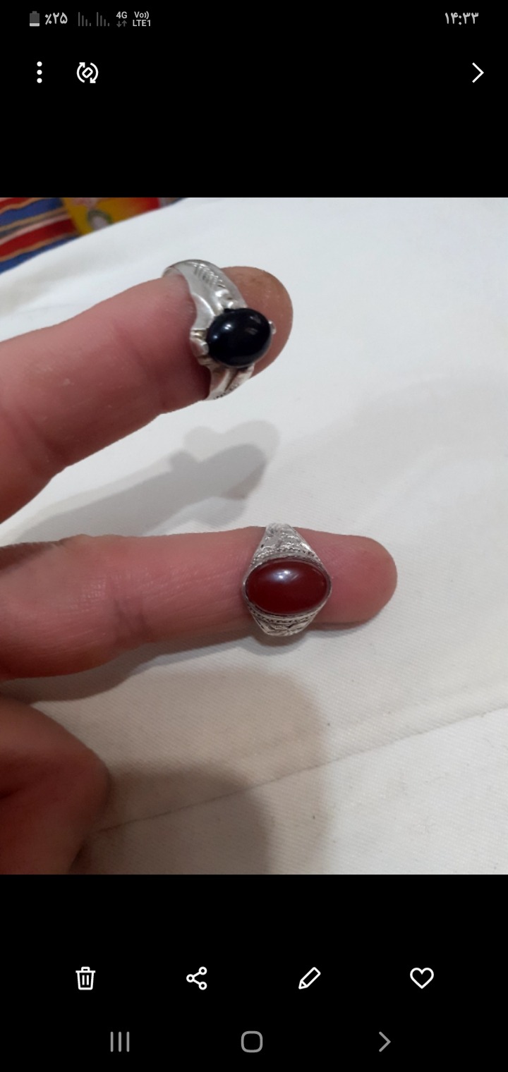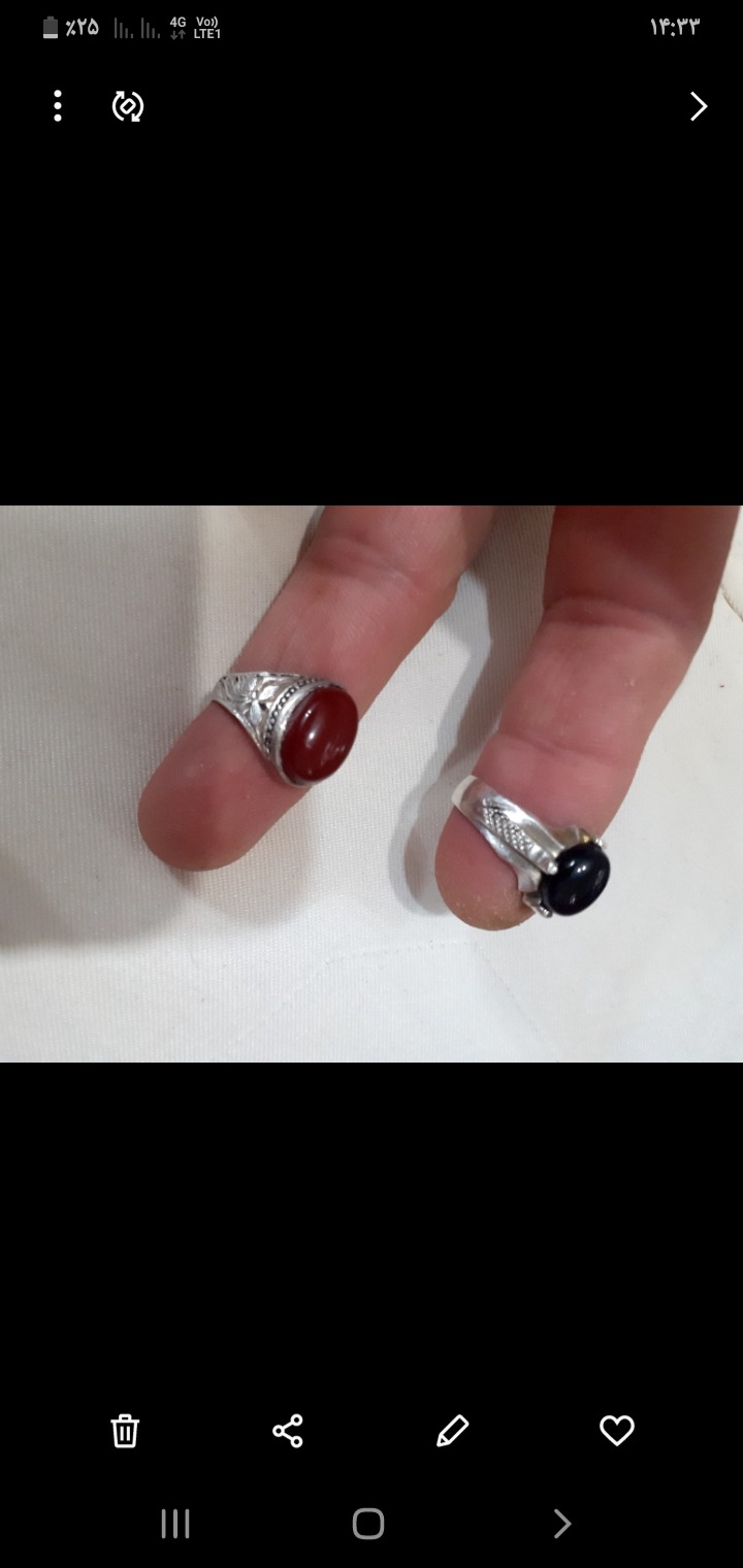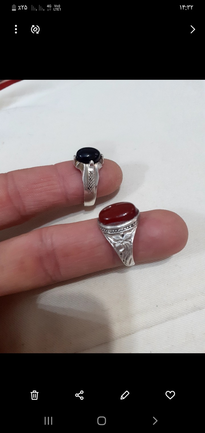 خریدار محترم اتدازه انگشتر اونی که عقیق هست سایز تقریبا 60 هستش و اونی که سنگ سیاه داره سایز 58 هست مطابق تصویر فروخته میشود