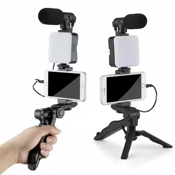 کیت تولید محتوا گوشی میکروفن ، نور ، سه پایه و