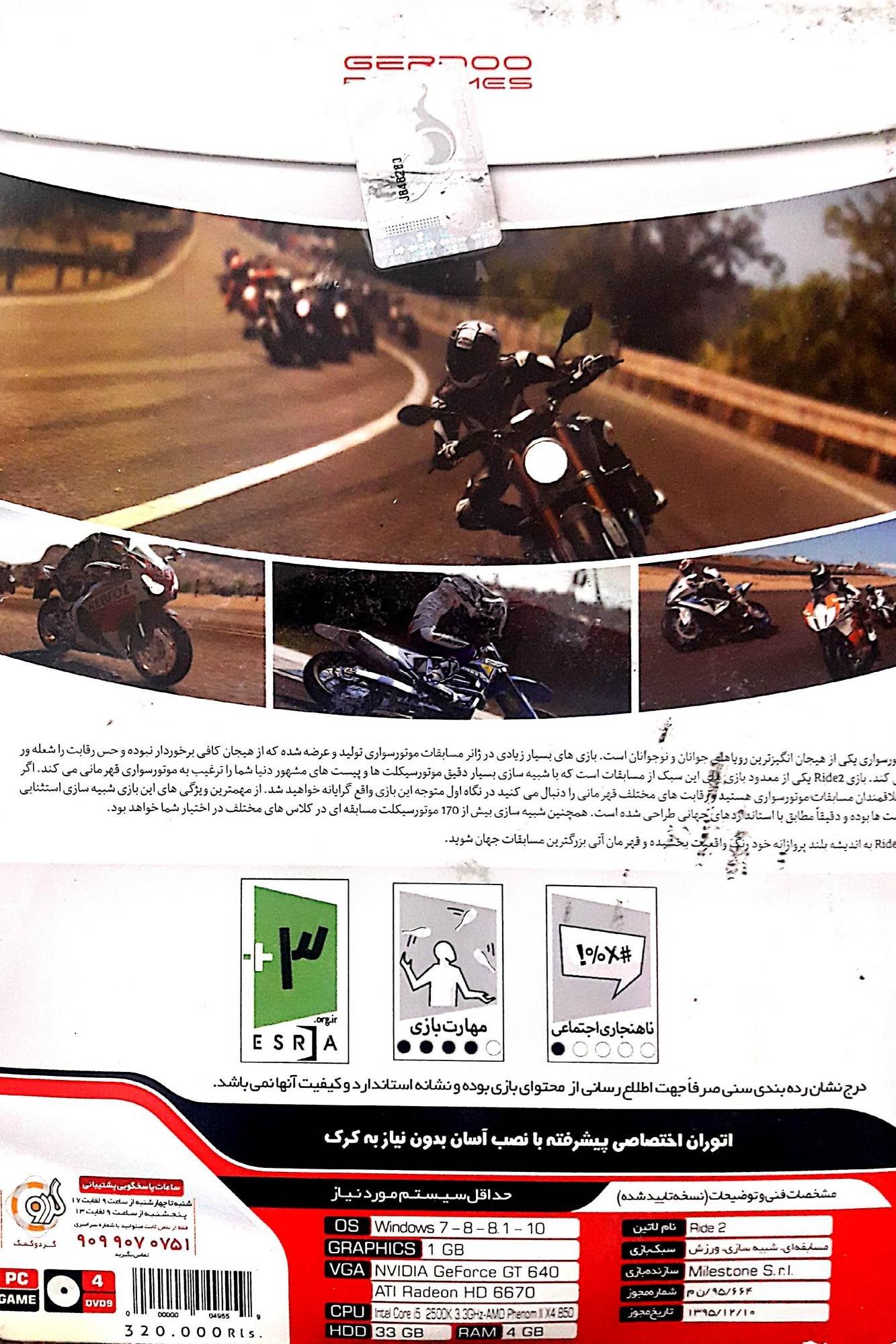 RIDE2مهارت های کنترل و هدایت موتور سیکلت را در انواع جاده ها و کشورها در شما به چالش می کشاند تا شما بتوانید لذت و بسیار نزدیک به دنیای واقعی را در آن تجربه کنید. در این بازی می توانید از میان 170 موتور سیکلت معروف و شناخته شده ، گاراژ دلخواهتان را با جمع آوری آنان ایجاد کنید. در این بازی جذاب بیش از 30 مکان مختلف برای موتور سواری وجود دارد که می توانید طی آنان از مکان های مختلفی از سراسر دنیا دیدن کنید. از سایر امکانات این بازی می توان به قابلیت شخصی سازی قسمت های مختلف موتور سیکلت از جمله موتور ، سیستم تعلیق ، چرخ ها و ویژگی های ظاهری آنان اشاره کرد. هم اکنون می توانید نسخه نهایی بازی Ride 2 را با لینک مستقیم و به صورت رایگان از سایت یاس دریافت نمایید.