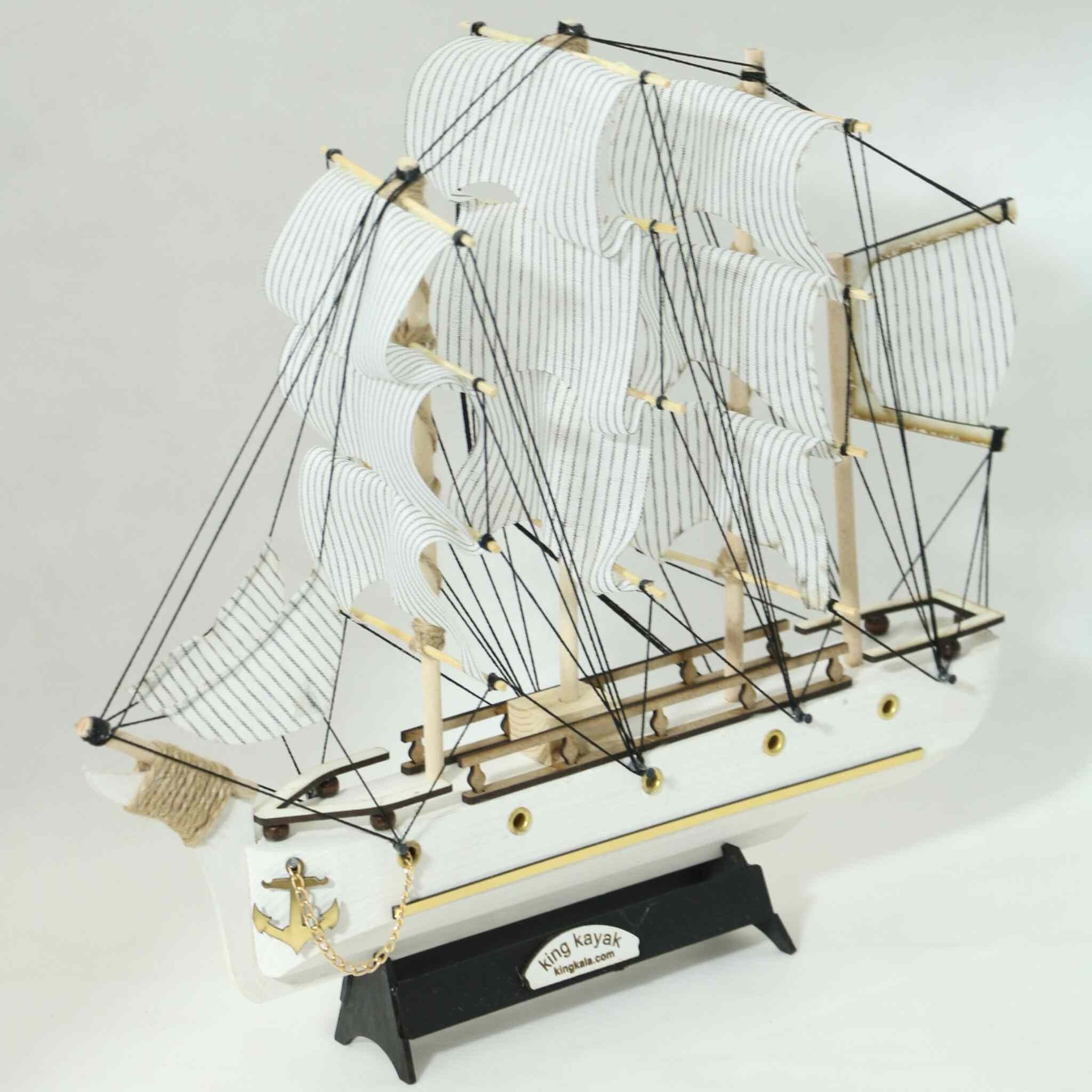 کشتی چوبی تمام دست ساز حدود 40 سانت طول با قابلیت باز و بسته شدن باد بانها در 5رنگ قهوه ای و مشکی و سفید و طوسی و طلایی مطابق با معیارهای که نماد ثروت و برکت میباشد