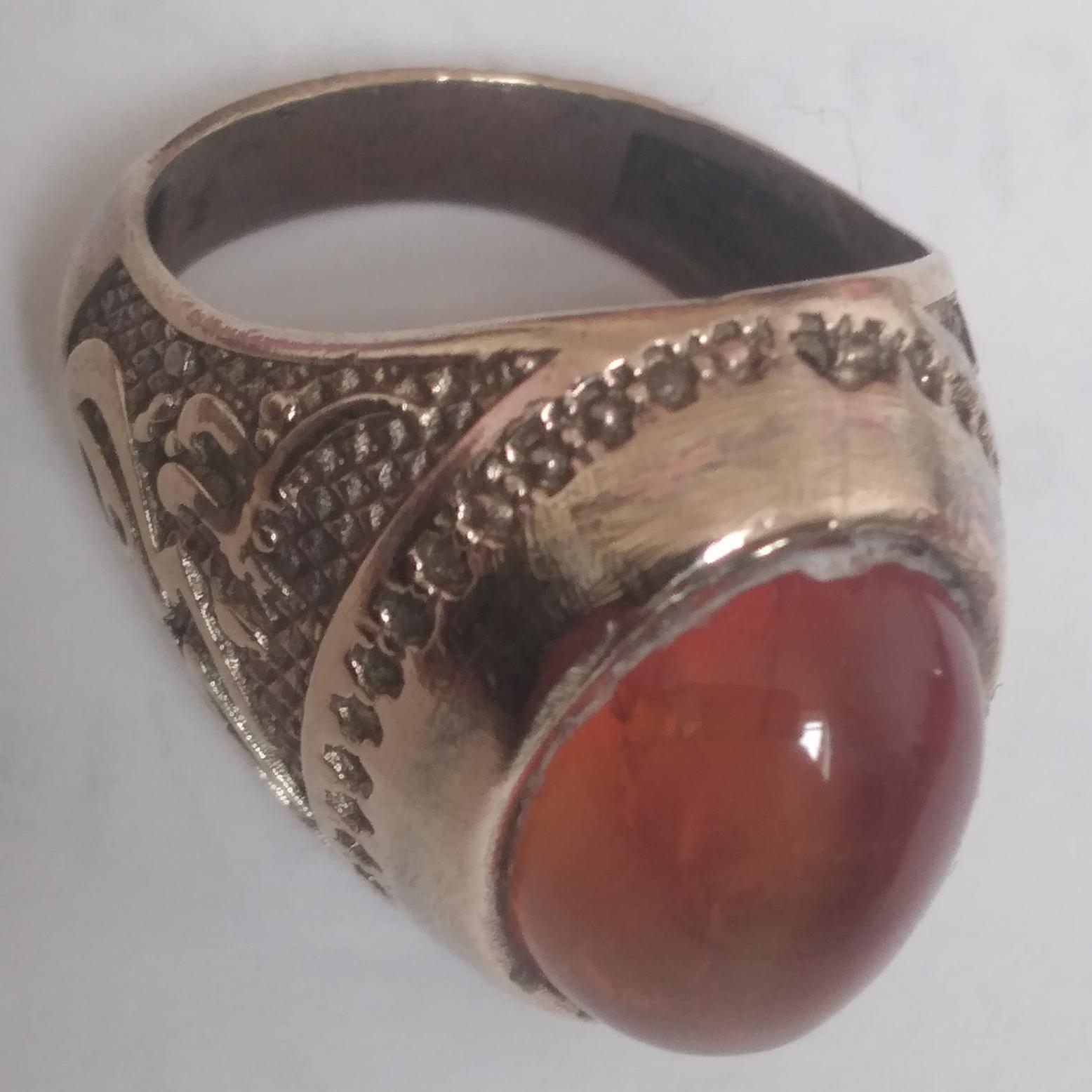 سلام.انگشتر قدیمی هست بارکاب نقره 925روش هک شده توتصاویرمشخص هست .نگین انگشتر سنگ معدنی زمرد پرتقالی هست قیمت قیدشده فقط مال سنگ اش هم نمیشه درکل قیمت معقول هست باخریدارکنارمیام. درضمن درصورت نپسندیدن میتونید مرجوعی کنید پس گرفته میشه .بازم سوال یا اتهاماتی بود .درخدمتتون هستم.یاحق.