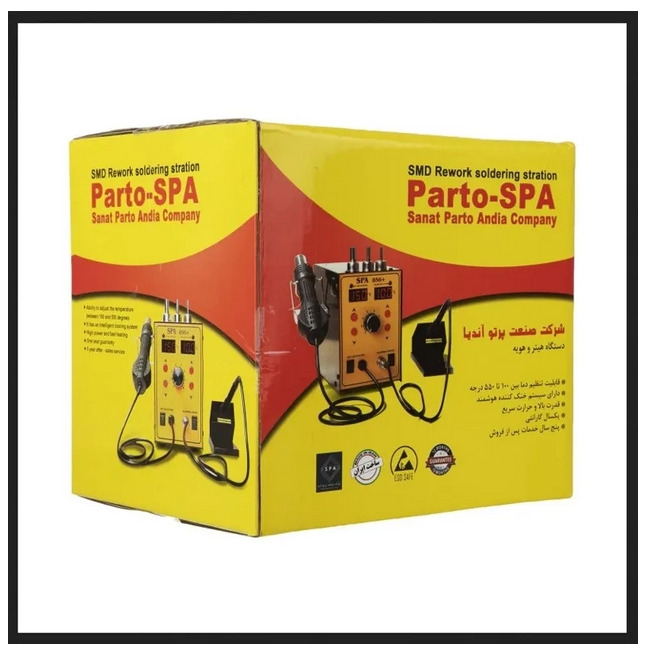 محدوده ی حرارت تولیدی با دستگاه هیتر و هویه صنعت پرتو آندیا مدل SPA856 از حدود 100 درجه تا 550 درجه سانتی گراد است. بهتر است به این موضوع دقت شود که با توجه به نوع قطعه یا برد الکتریکی، میتوان دما را تنظیم کرد تا به قطعه یا برد، آسیبی وارد نشود. در بعضی از موارد ممکن است به اشتباه بعضی از قطعات به درستی در جای خود نباشند یا اتصال با کیفیت بدی ایجاد شده باشد؛ در این موارد میتوان با استفاده از هیتر که برای هیتر و هویه صنعت پرتو آندیا مدل SPA856 تعبیه شده است، قطعه یا اتصال رابه درستی اصلاح کرد.