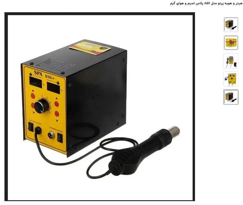 یک قسمت از دستگاه که هیتر نام دارد، قسمتی از دستگاه است که همانند سشوار عمل کرده و هوای گرم را به بیرون منتقل می کند. از هیتر میتوان برای مونتاژ قطعات smd و یا دمونتاژ قطعات استفاده می شود. یکی دیگر از امکانات هیتر و هویه صنعت پرتو آندیا مدل SPA856، خروجی هویه است که به دستگاه متصل شده و دمای آن با توجه به #ماژول #تنظیم #دستگاه، تعیین می شود. و میتوان طبق نیاز خود و دستورالعمل دمای #جوش #قطعات #الکترونیکی، میزان #حرارت را تنظیم کرد. بهتر است بدانید که هویه های موجود در بازار قابلیت تنظیم دما ندارند و قابل استفاده برای #مونتاژ قطعاتی که محدودیت های دمایی دارند نیستند به همین جهت استفاده از هیتر و هویه صنعت پرتو آندیا مدل SPA856 میتواند در فعالیت شما بازدهی و دقت زیادی را به همراه داشته باشد. از هویه برای لحیم کاری برد و قطعات الکترونیکی استفاده خواهد شد که با قرار گرفتن هویه و هیتر در کنار یکدیگر، کار شما بسیار راحت و ساده خواهد بود.
