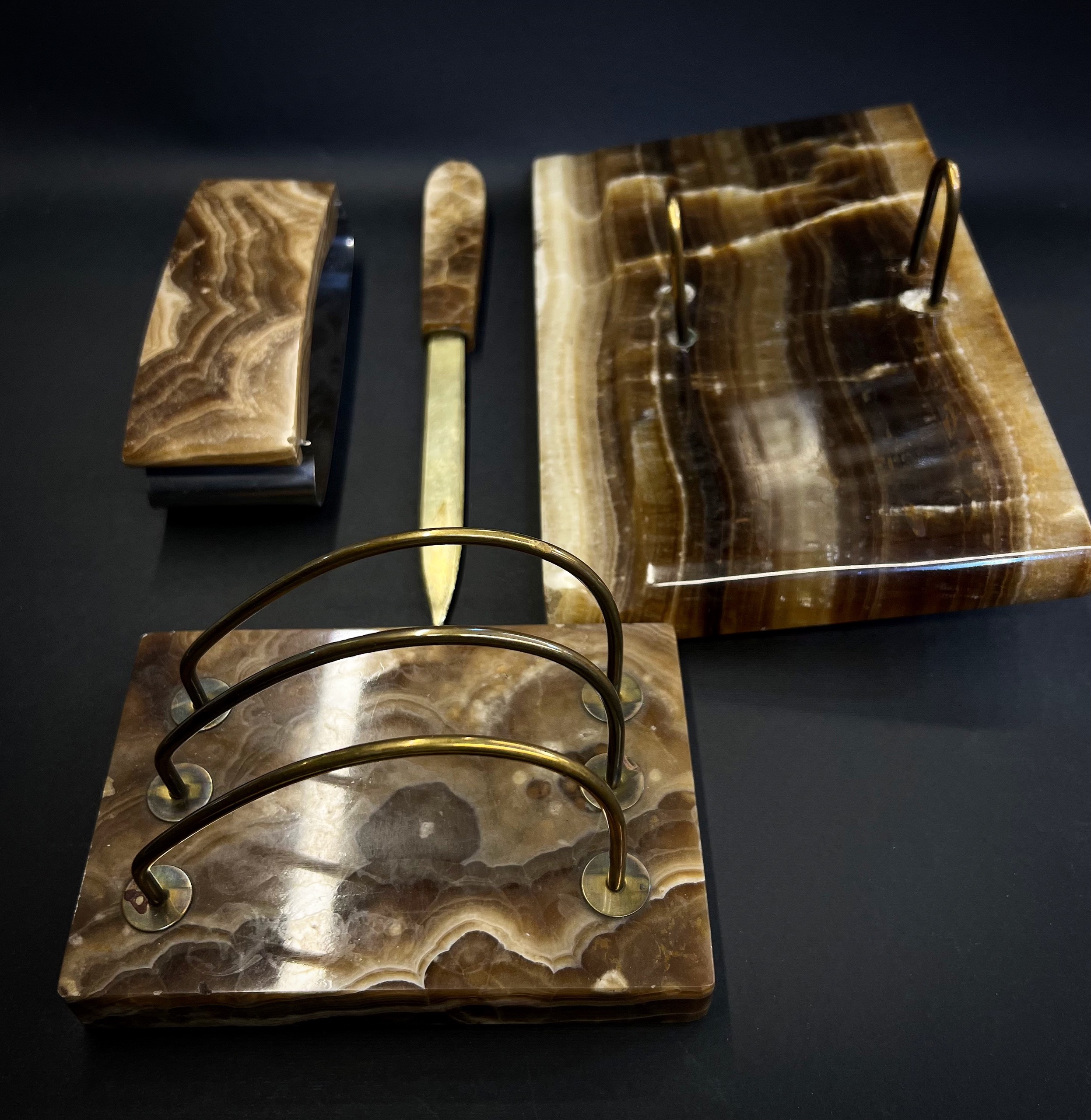 سرویس رومیزی تحریر 4تکه سنگ مرمر و برنجی درباری و مدیریتی