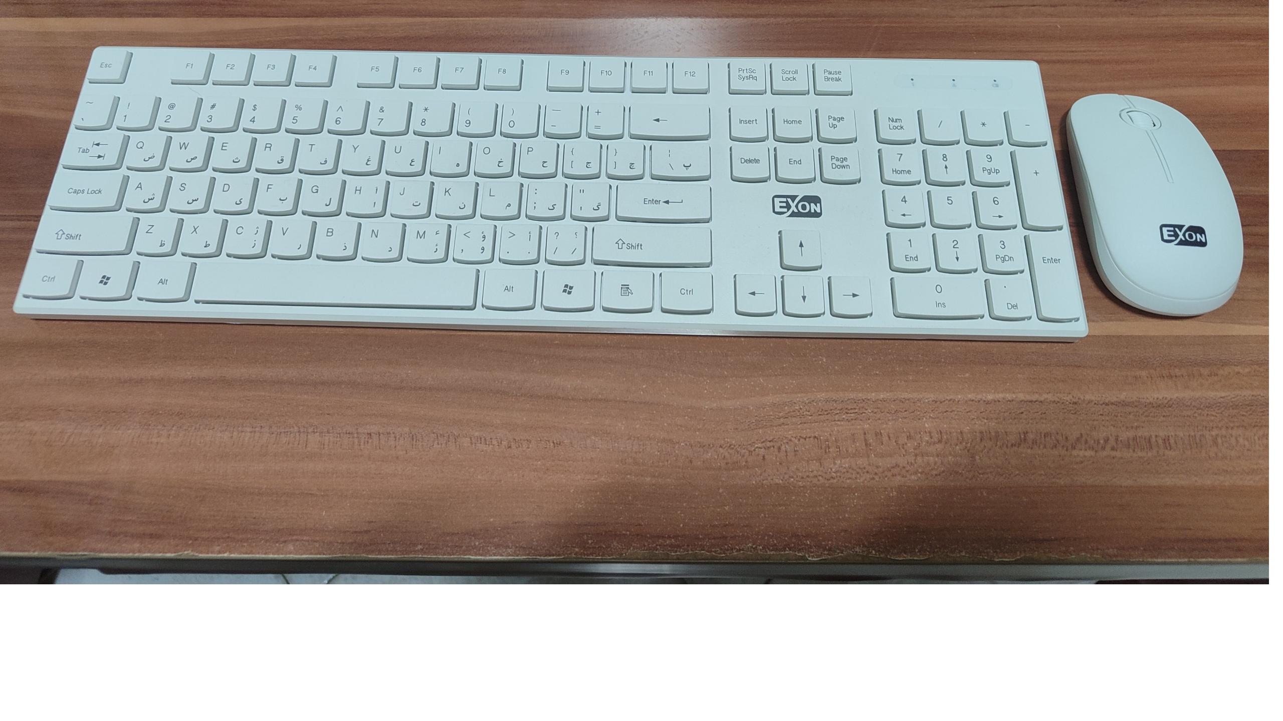 ماوس کیبورد بیسیم. هر کدام فقط یک باتری لازم دارند و کم مصرف هستند. ظاهر در عکس مشخصه سفید و تمیز هستند.