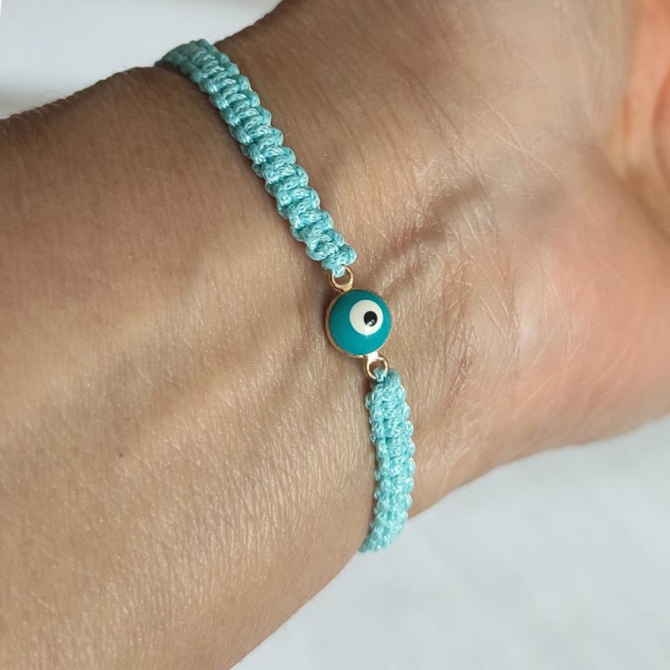 دستبند بسیارزیبا چشم ونظر،با بند دستباف،قابل تنظیم وفری سایز