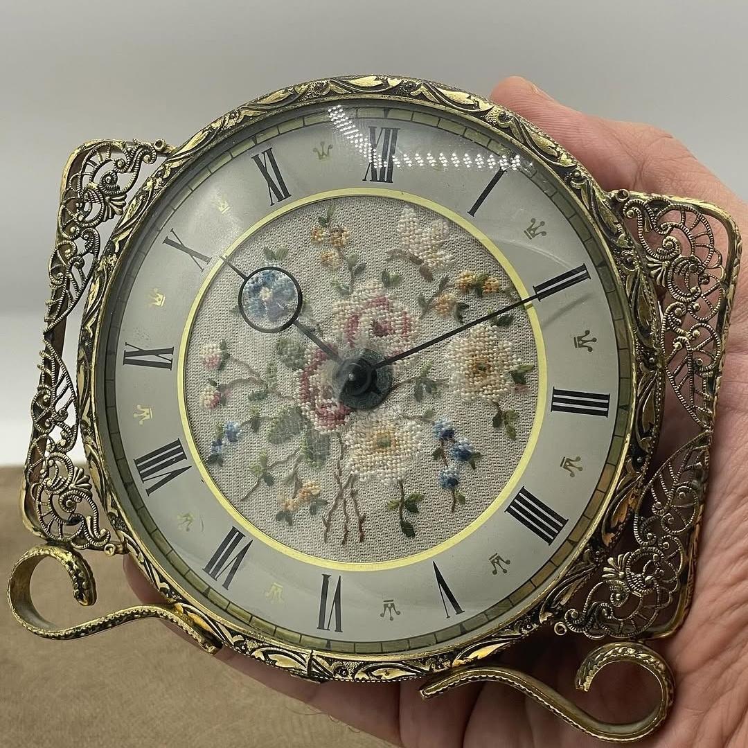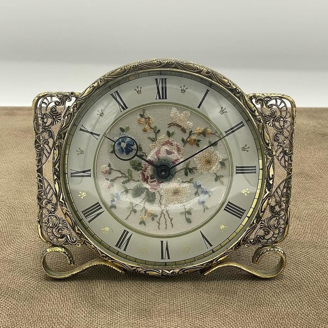 ساعت کوکی آنتیک برنزکاری و سوزن دوزی انگلیسی