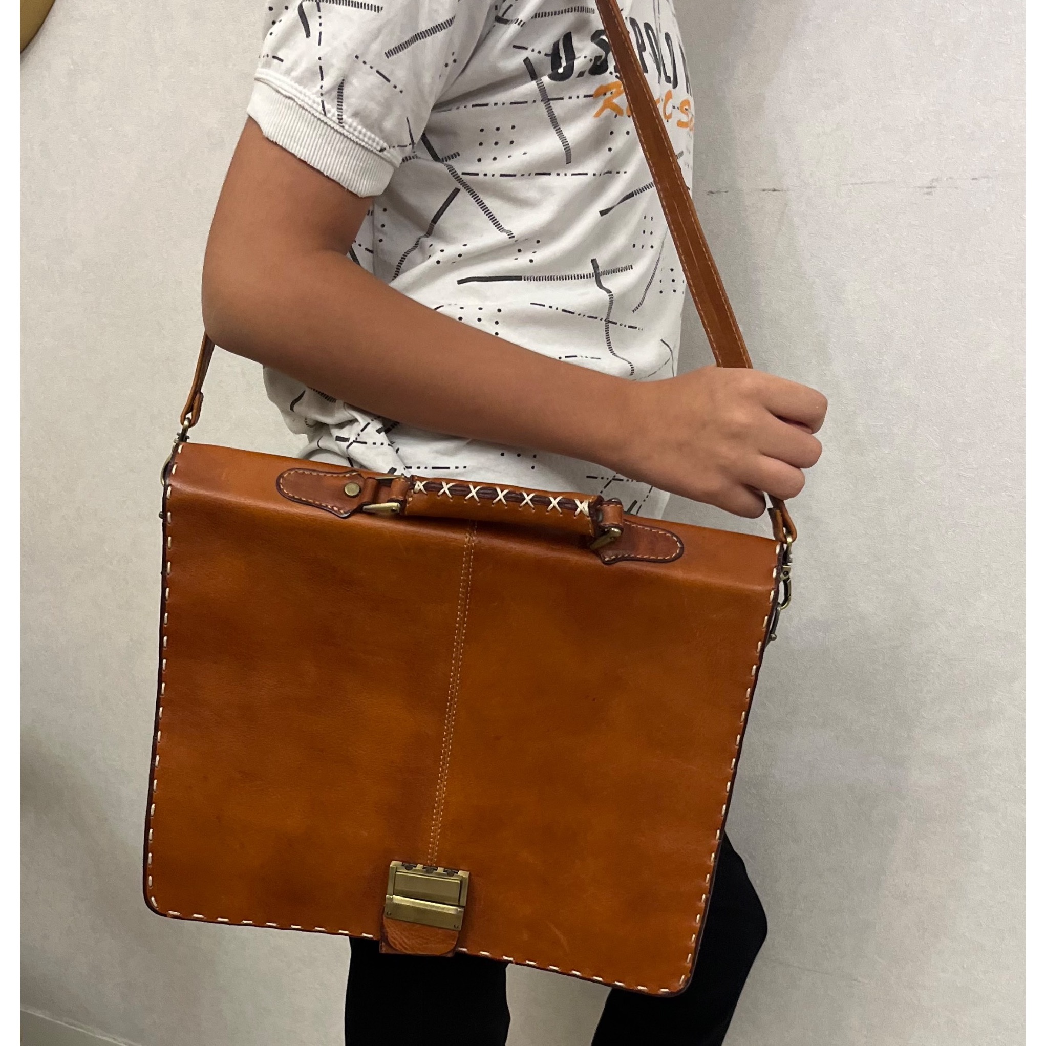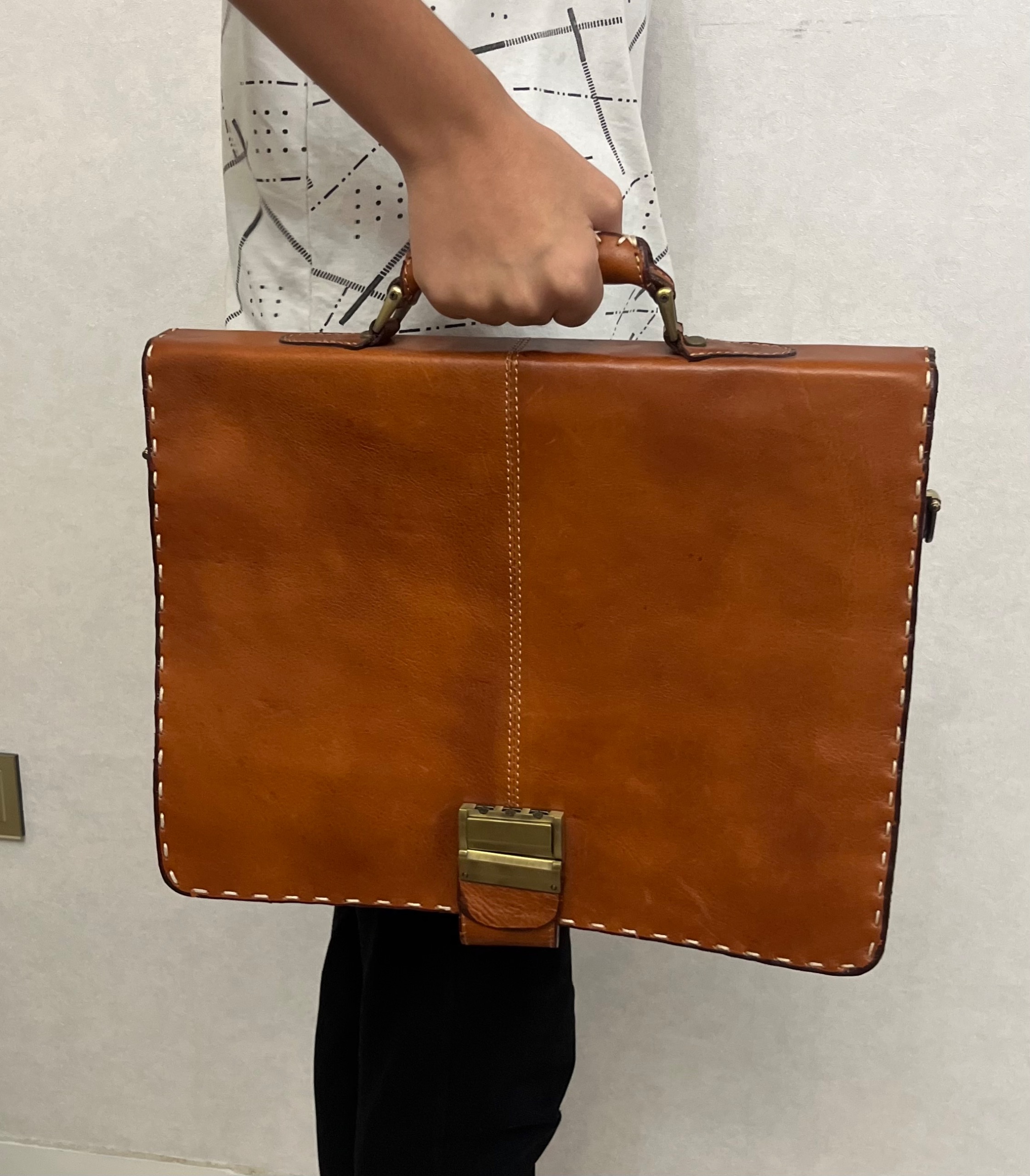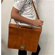 کیف چرم طبیعی اداری دستی و دوشی با قفل رمزدار نو
