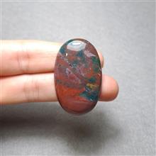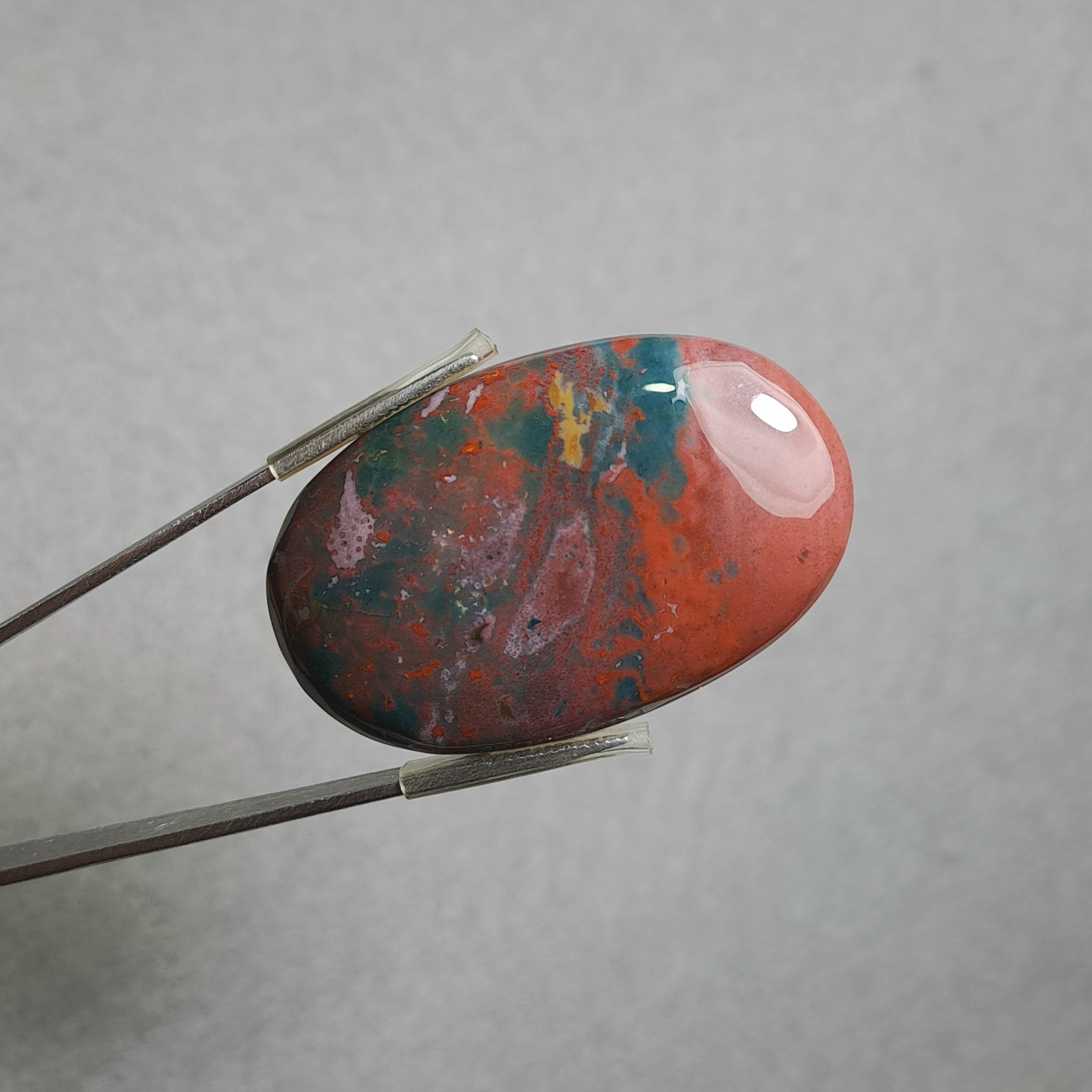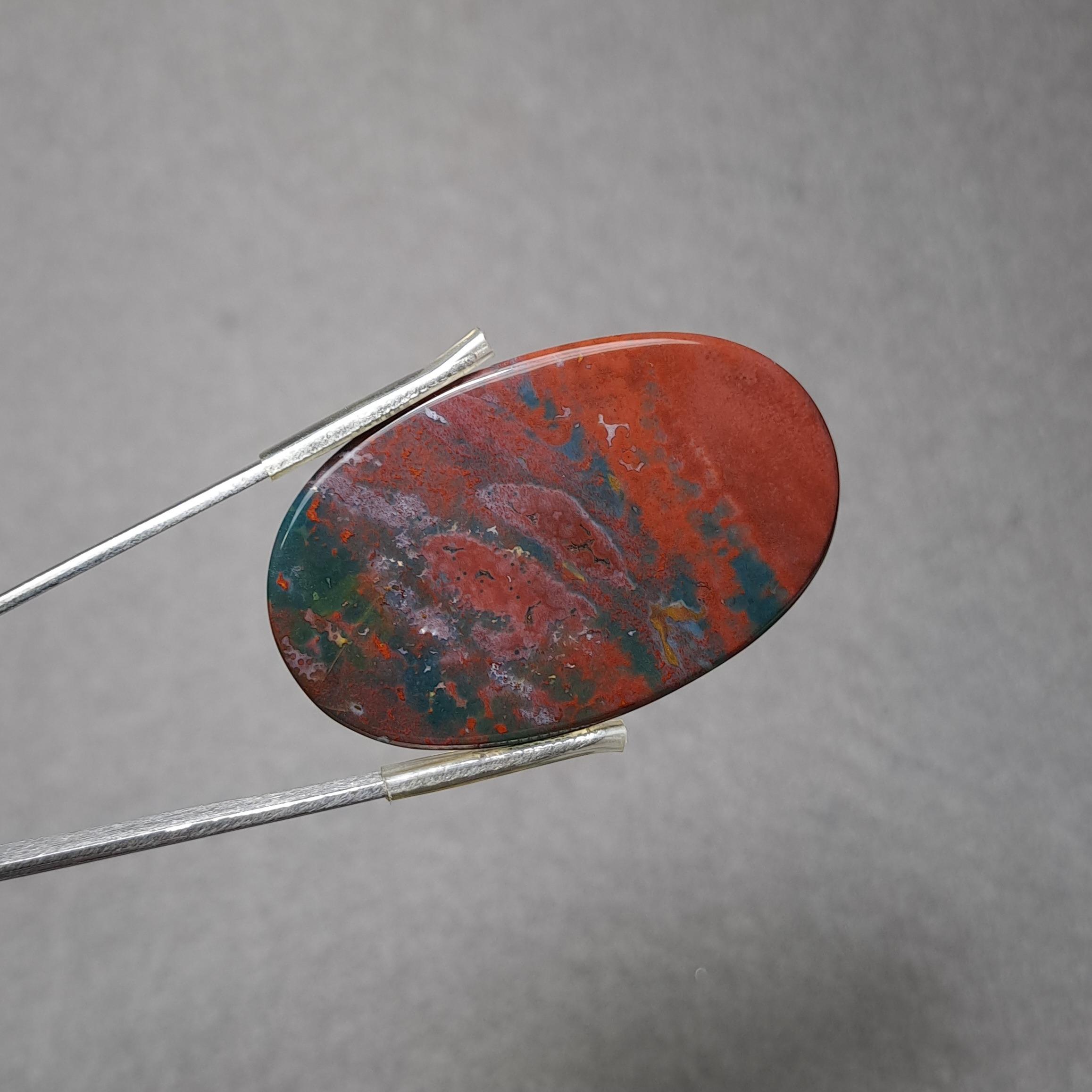 هلیوتروپ بسیار باکیفیت "پلاسما" از نوع بسیار مرغوب هندی، با زمینه سبز یشمی، سبزوآبی خوش رنگ و کمیاب و لکه های رنگی متنوع و لکه های قرمز "یشم قرمز" بسیار زیبا و هارمونیک. درشت و خوش سایز، کیفیت عالی. مناسب آویز گردنی و مناسب برای ساخت هرگونه زیورالات