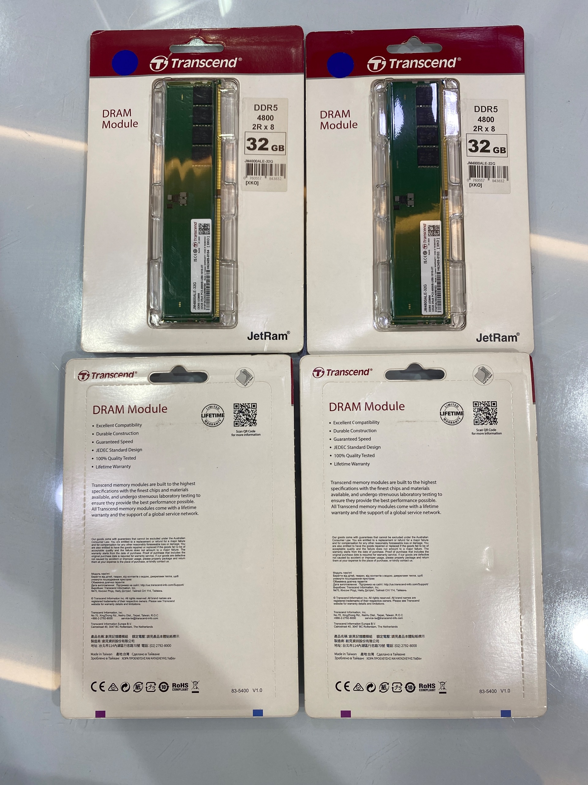 رم Transcend DDR5 با ظرفیت 32 گیگابایت و فرکانس 4800MHz، کاملاً نو و استفادهنشده.