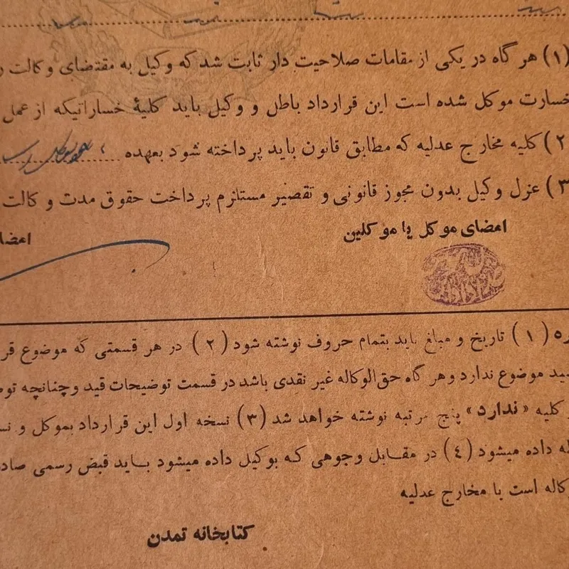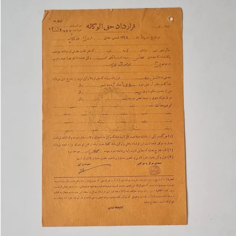 ورقه حق الوکاله (پهلوی اول)