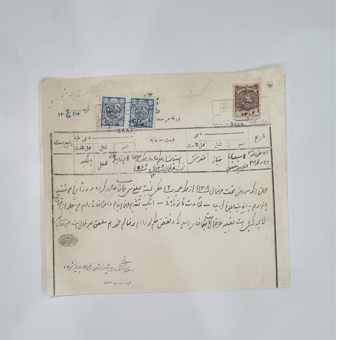 سند خطی تمبردار ورقه عرضحال به دیوانخانه عدلیه