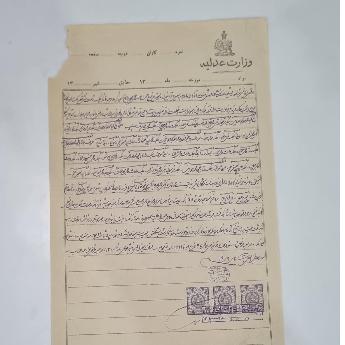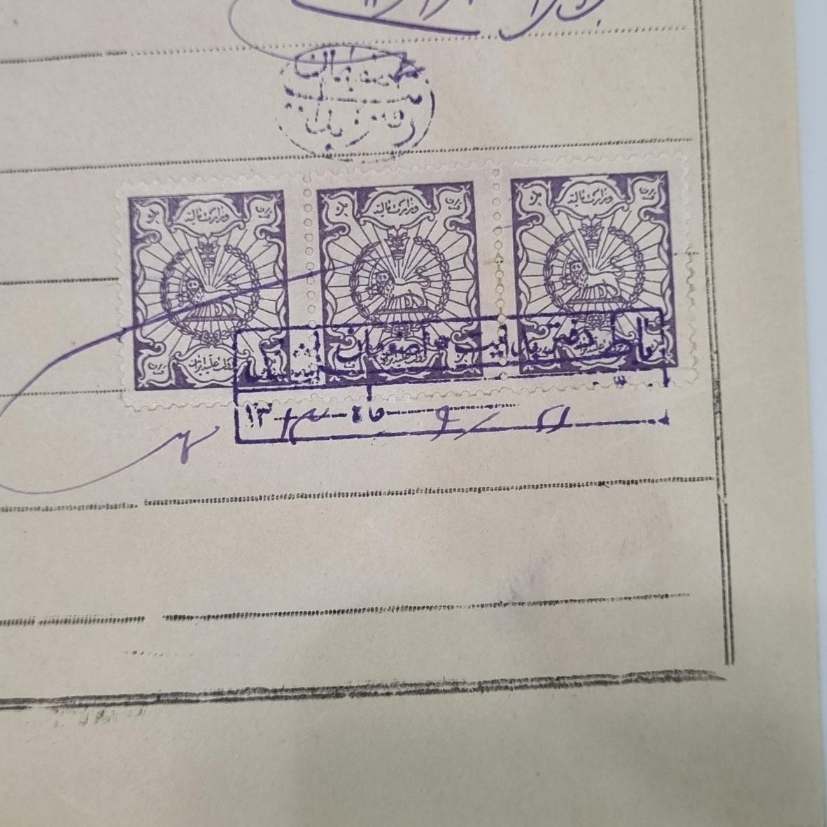 سند خطی تمبردار (5 تمبر مالیه سورشارژ اصفهان)
