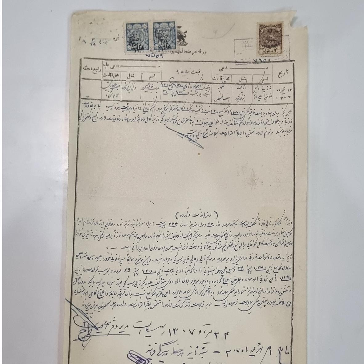 سند خطی تمبردار ورقه عرضحال به دیوانخانه عدلیه