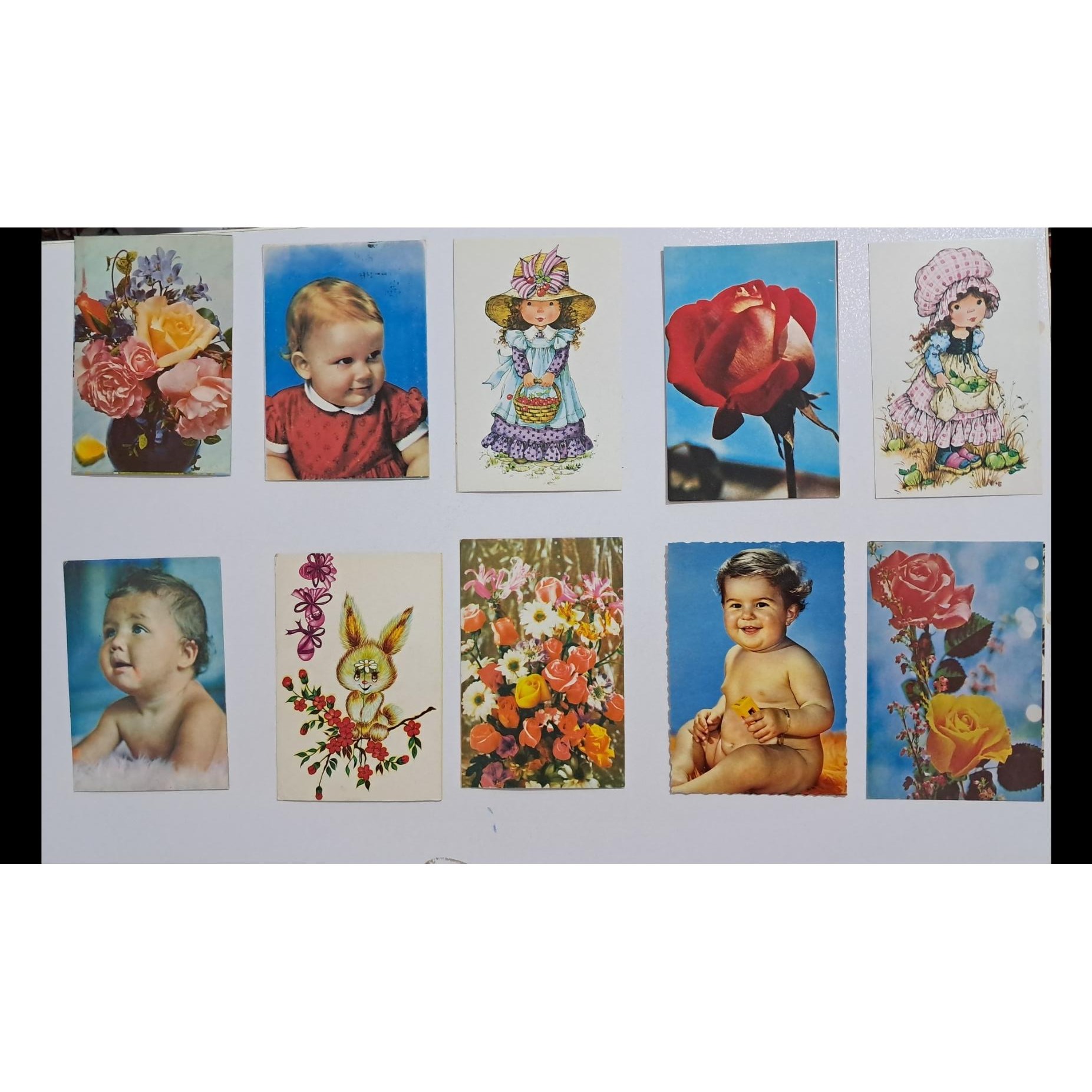 تعداد 10 عدد کارت تبریک کاملا نوستالژی و خاطره انگیز.  بیشتر آنها صد درصد نو هستن.  در حد نو زدم که مشکلی نباشه.  یکی از کارت تبریک ها ایتالیایی میباشد و میتونید قیمت بگیرید ولی همه را قیمت مناسب زدم که ان شاء الله مشتری هم راضی باشه.