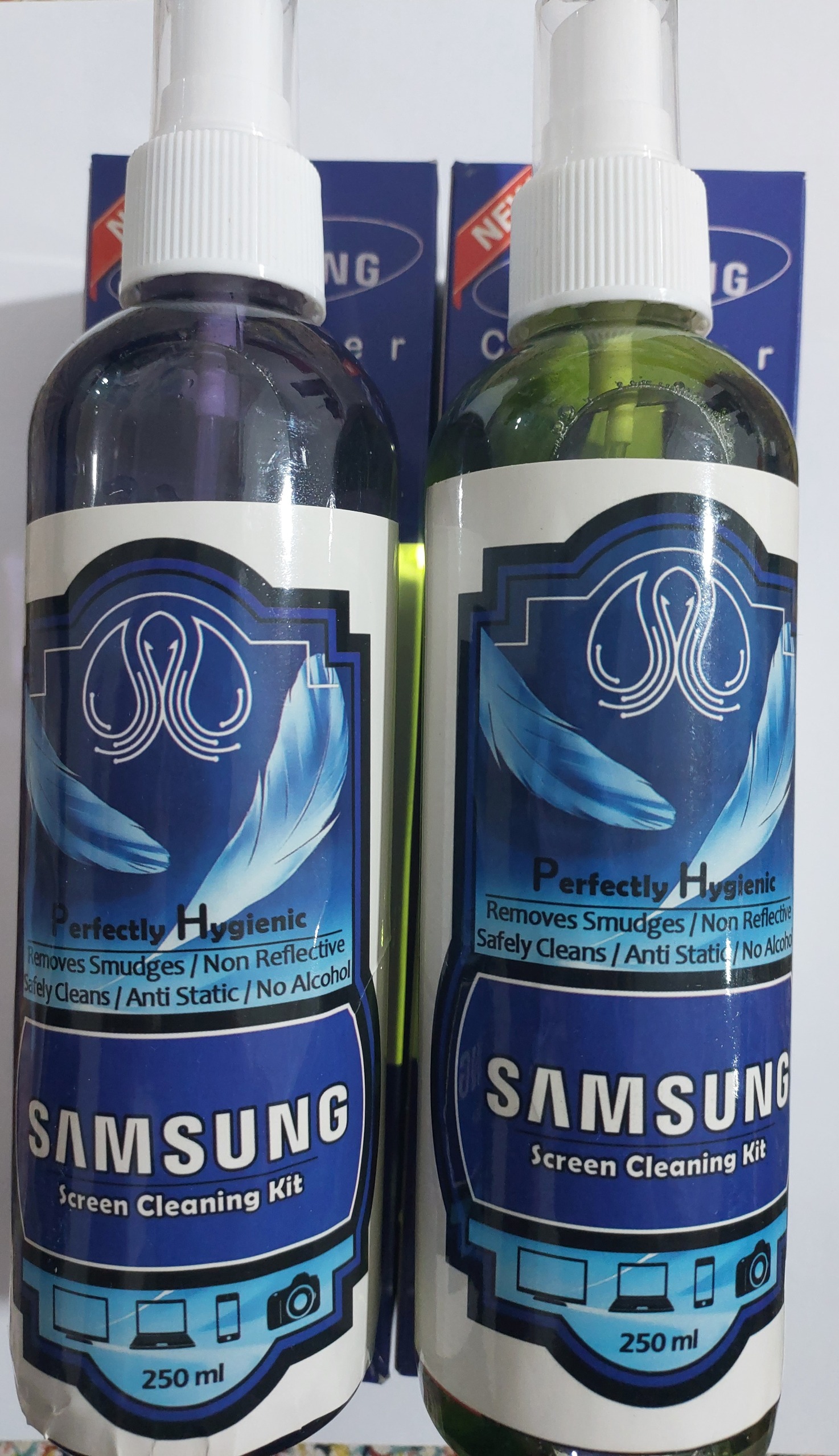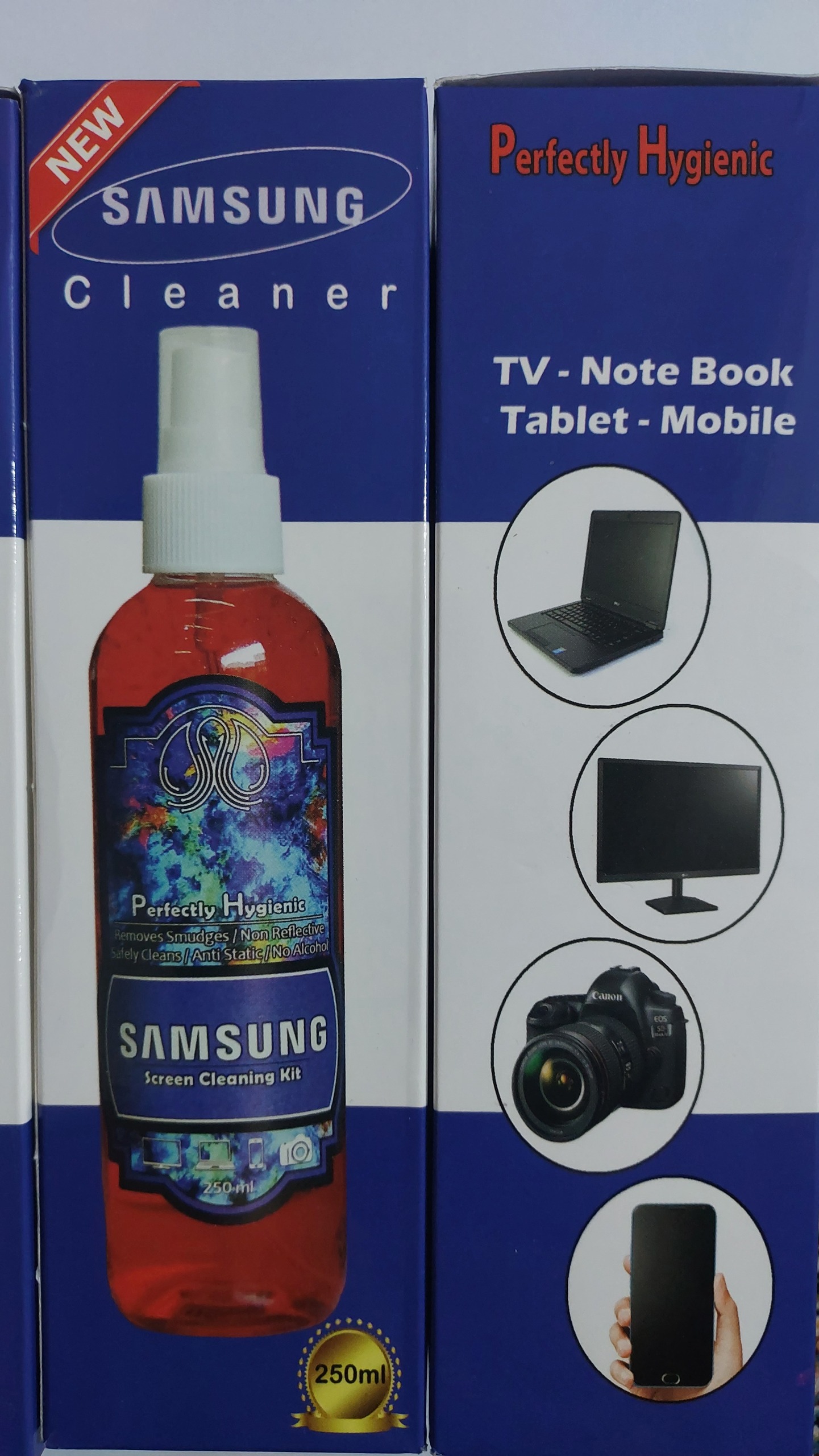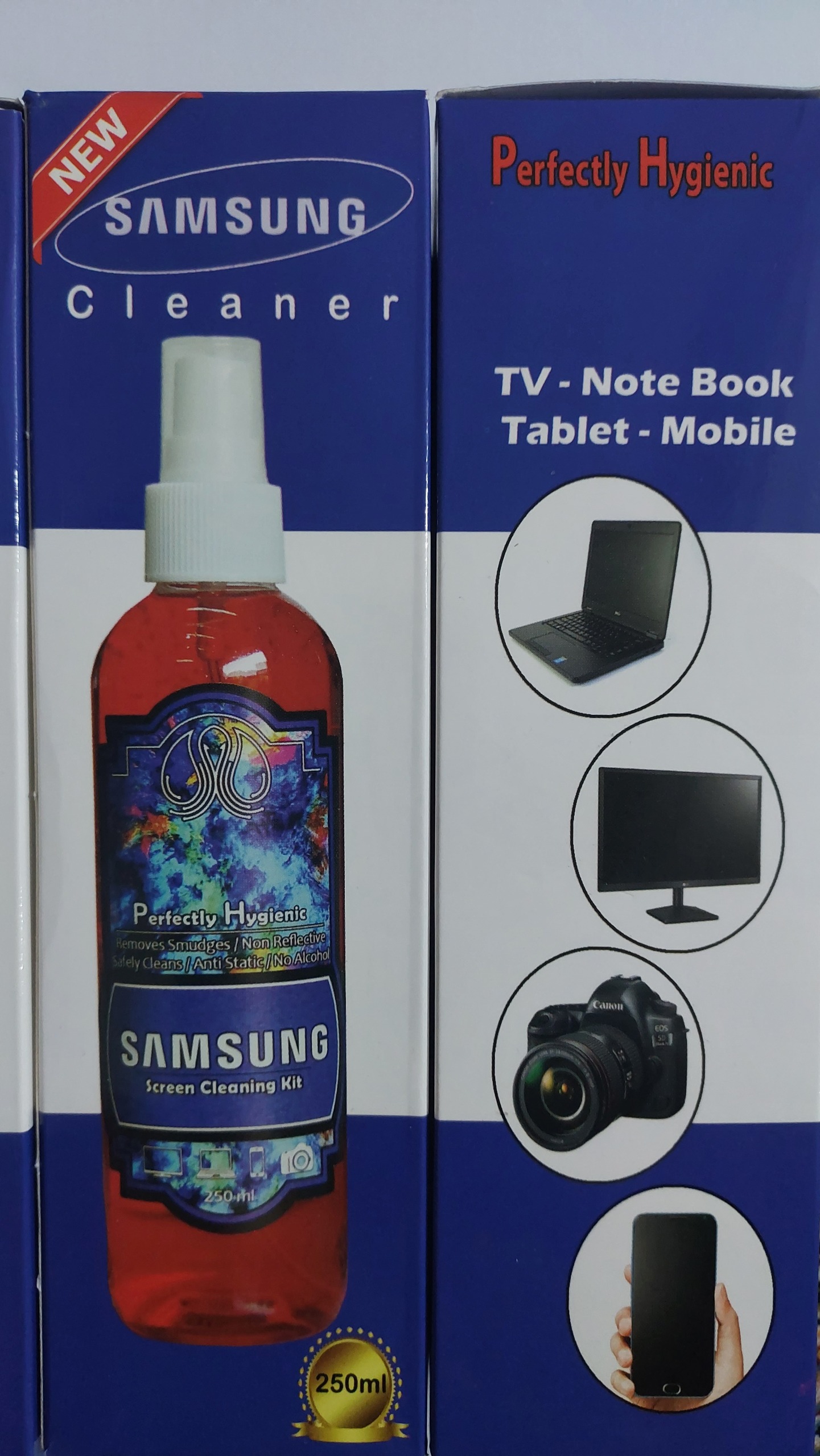 اسپری پاک کننده ال سی دی گوشی....صحفه لپ تاپ...صحفه تلویزیون....برند سامسونگ ...بعضی پک هاا دستمال داره...بعضیا نداره...رندوم خدمتتون میفرستیم....با یکبار مصرف مشتری میشد....برند سامسونگ مخصوص صحفه های شیشه حتی برای عدسی دوربین حرفه ای هم کاربرد دارد ...حجم 250 میلی لیتر میباشد.....بسیار کاربردی....از بقیه محصولات غرفه دیدن کنید