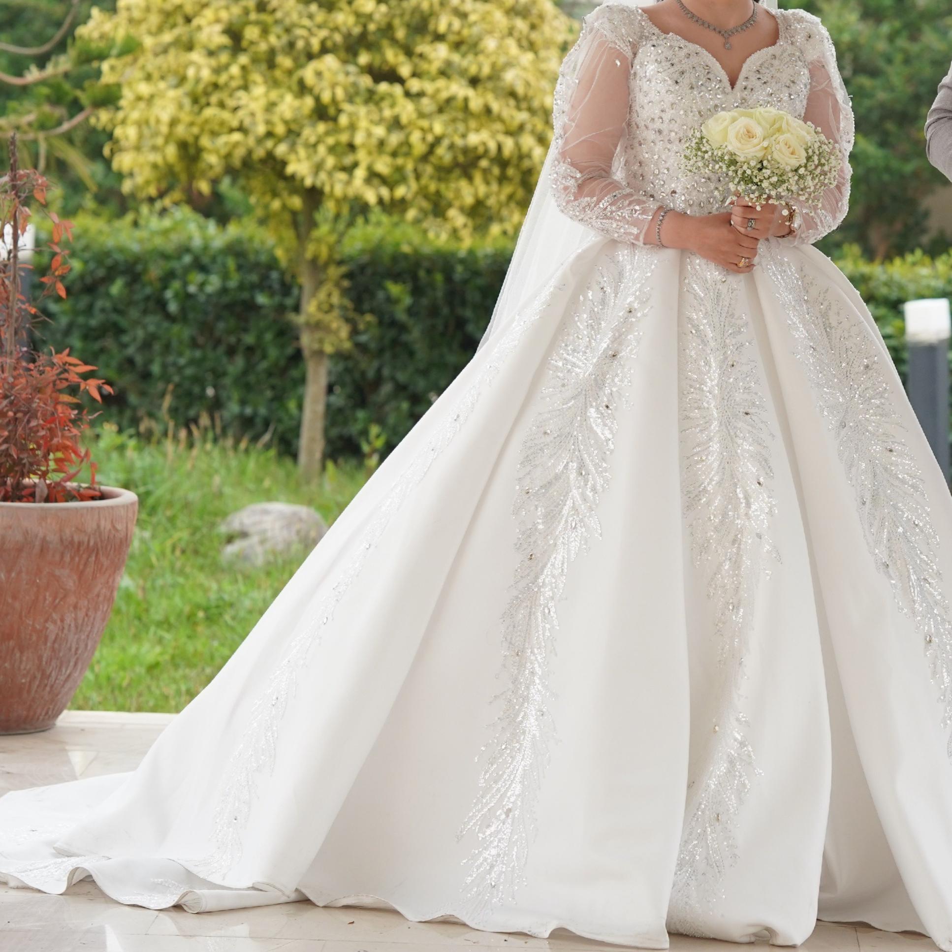 دامن ساتن آمریکایی است و پشت دامن دنباله دار است