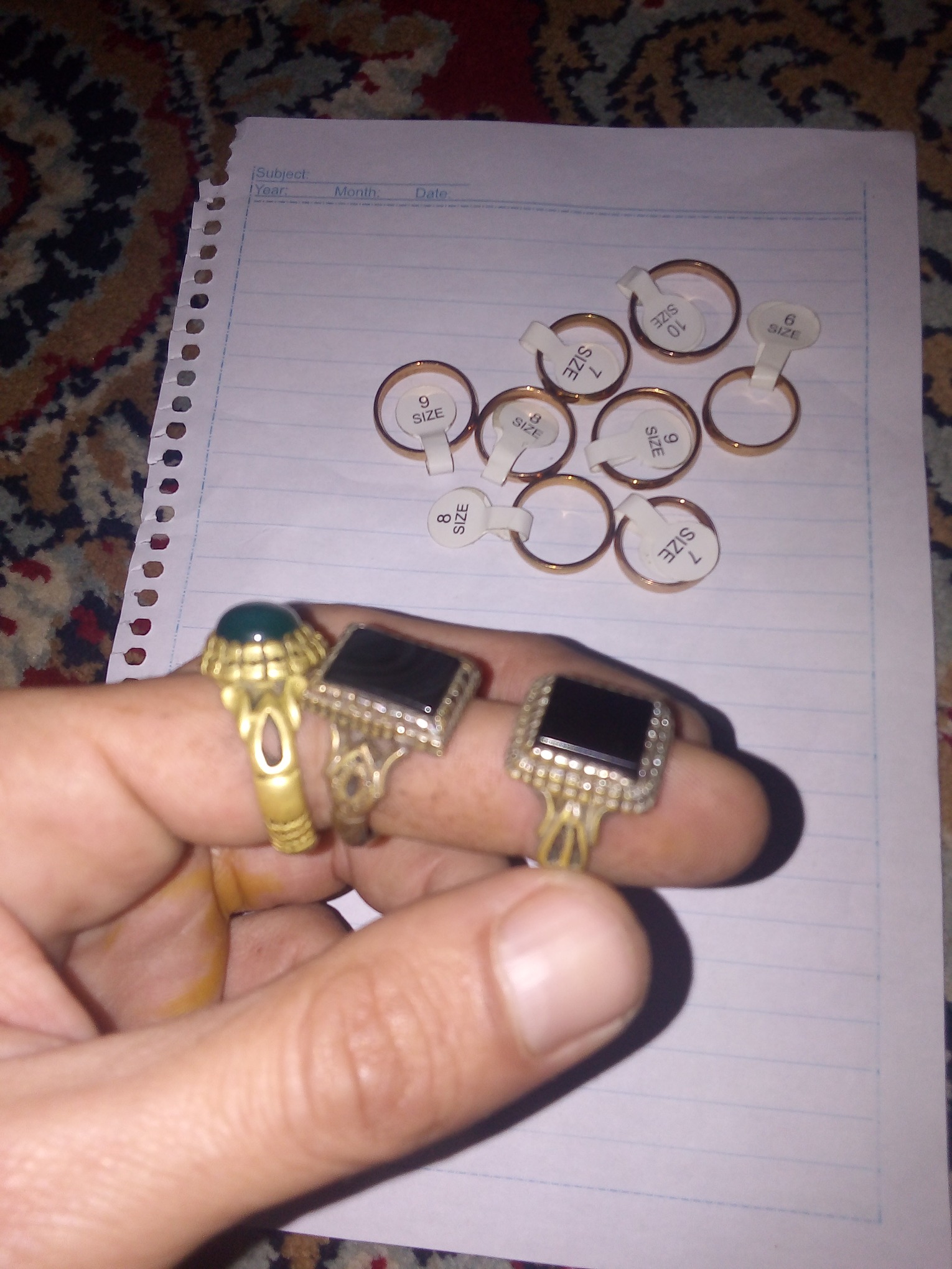 یازده عدد انگشتر که هشت عدد حلقه رنگ ثابت و سه عدد با نگینهای اونیکس و عقیق سبز و برنزی و قدیمی میباشند تمامی آگهی های من به همراه اشانتیون پدر سریعترین زمان ممکن ارسال میشود مناسبترین قیمت را دارند