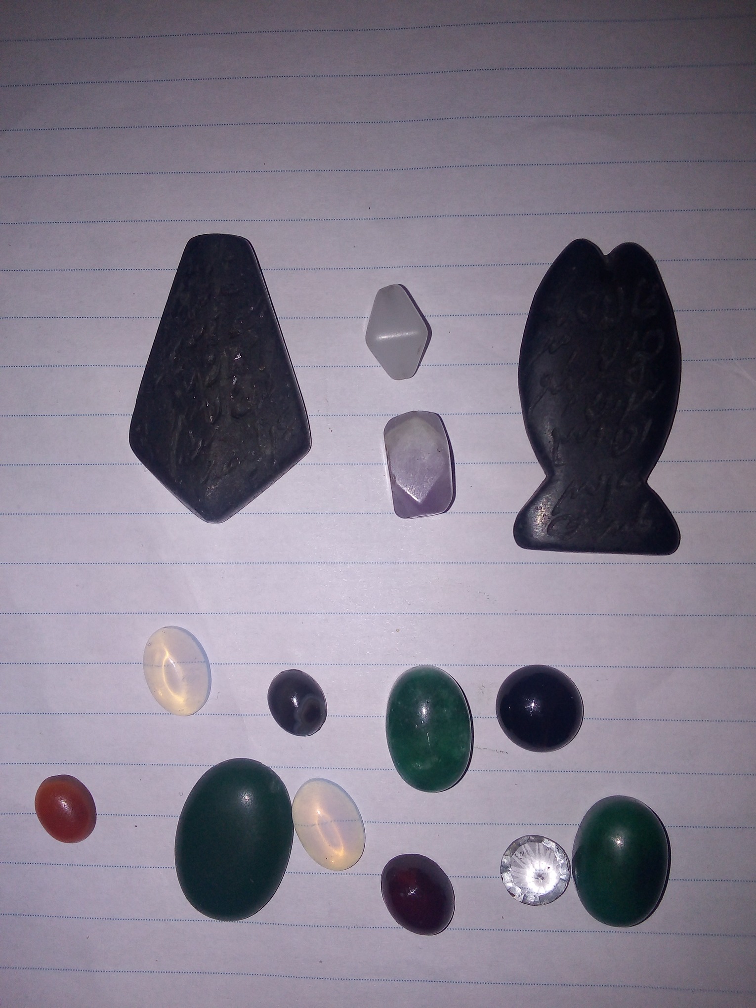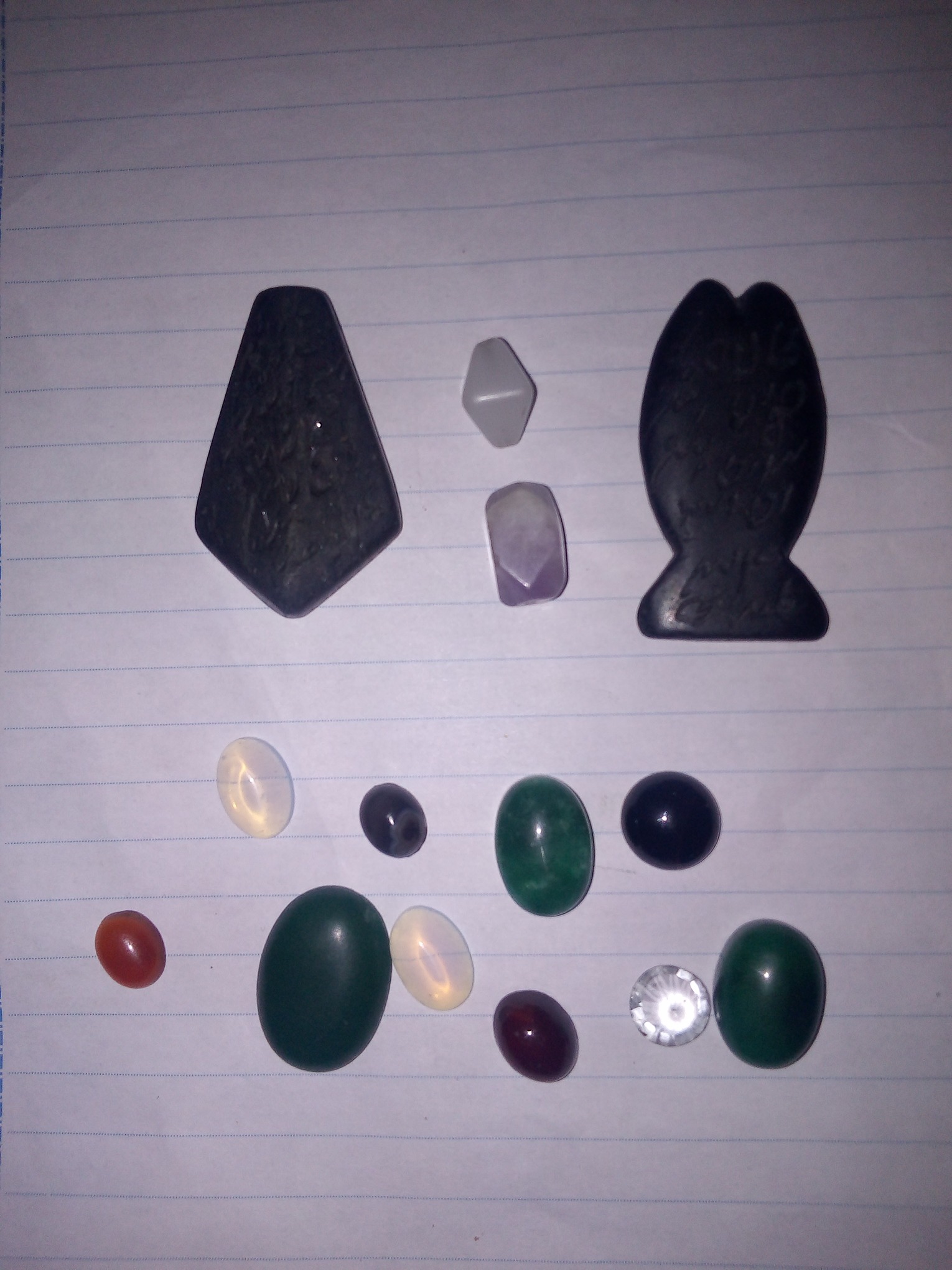 چهار تا بالایی مهره و ده تا پایینی نگین میباشد لطفاً با شناخت خودتون خرید کنین چون من نمیدونم چه سنگ های هستند تمام کالاهای من به همراه اشانتیون و در سریعترین زمان ممکن ارسال میشود و مناسبترین قیمت را دارد اون دو تا مهره سیاه جذب قوی آهن ربا دارند و روشون ایه و اعداد ابجد حک شده اندازشونو با توجه به خطوط کاغذ میفهمین