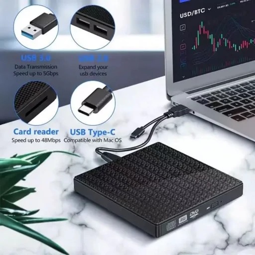 درایو دیویدی اکسترنال Veroyi، DVD CD +/-RW Writer/Rewriter/Player USB 3.0 اکسترنال برای لپتاپ