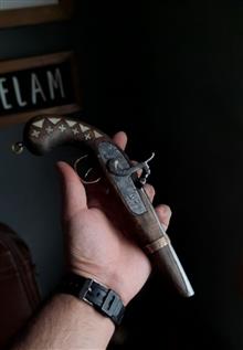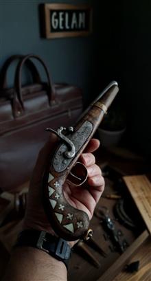 تپانچه کلکسیونی قلم کاری شده بدون عیب و ایراد، ماشه هم کار میکند
