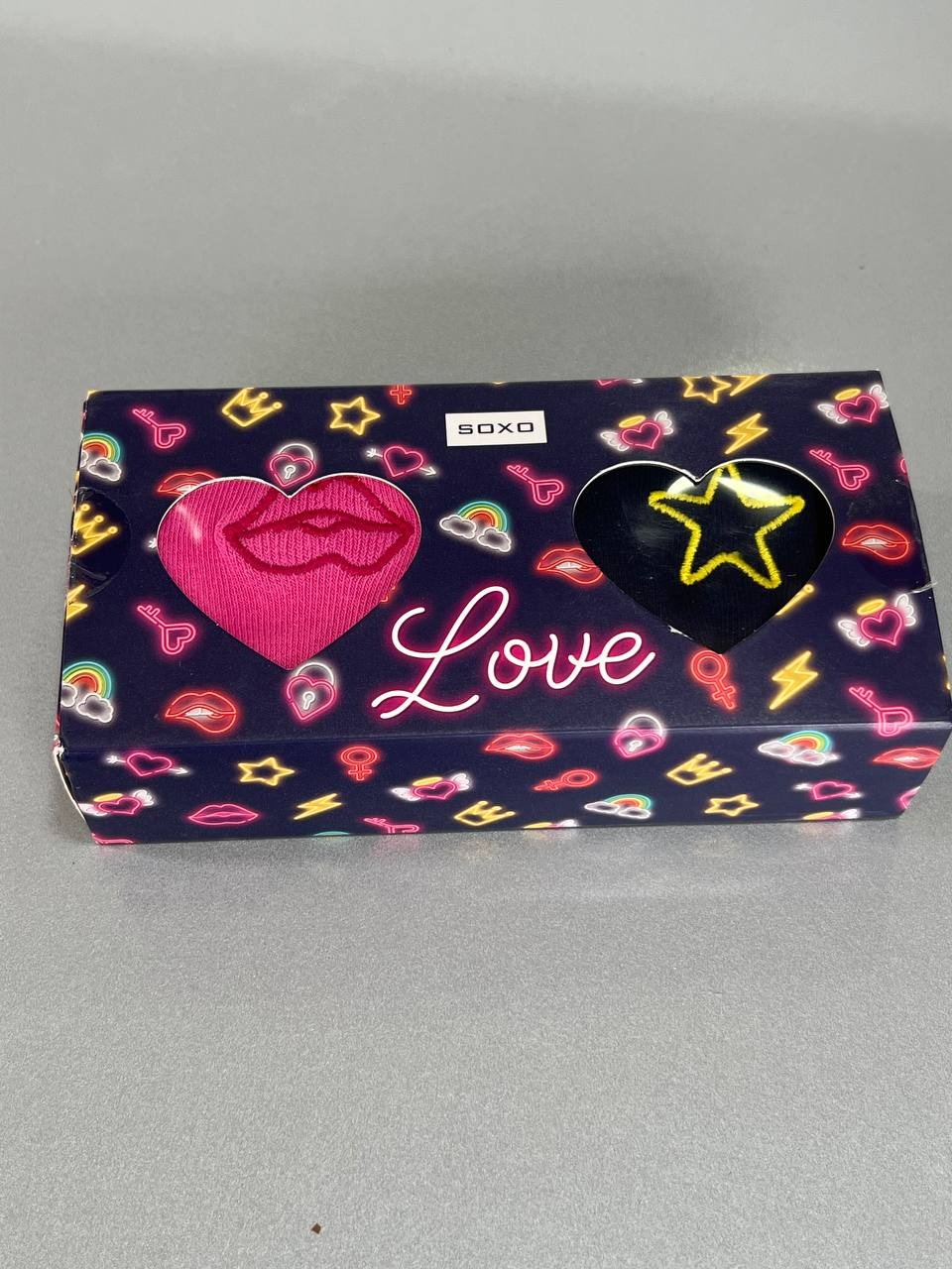 طرح "We Just Fit" (مدل پازل): این پک شامل یک جفت جوراب مشکی با تکه پازل قرمز و یک جفت جوراب صورتی با قلب قرمز است. شعار روی جعبه به وضوح نشاندهنده این است که دو فرد مانند تکههای یک پازل، تکمیلکننده یکدیگرند.