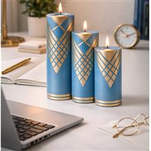 ست شمع دکوری سهتایی طرح مدرن آبیطلایی