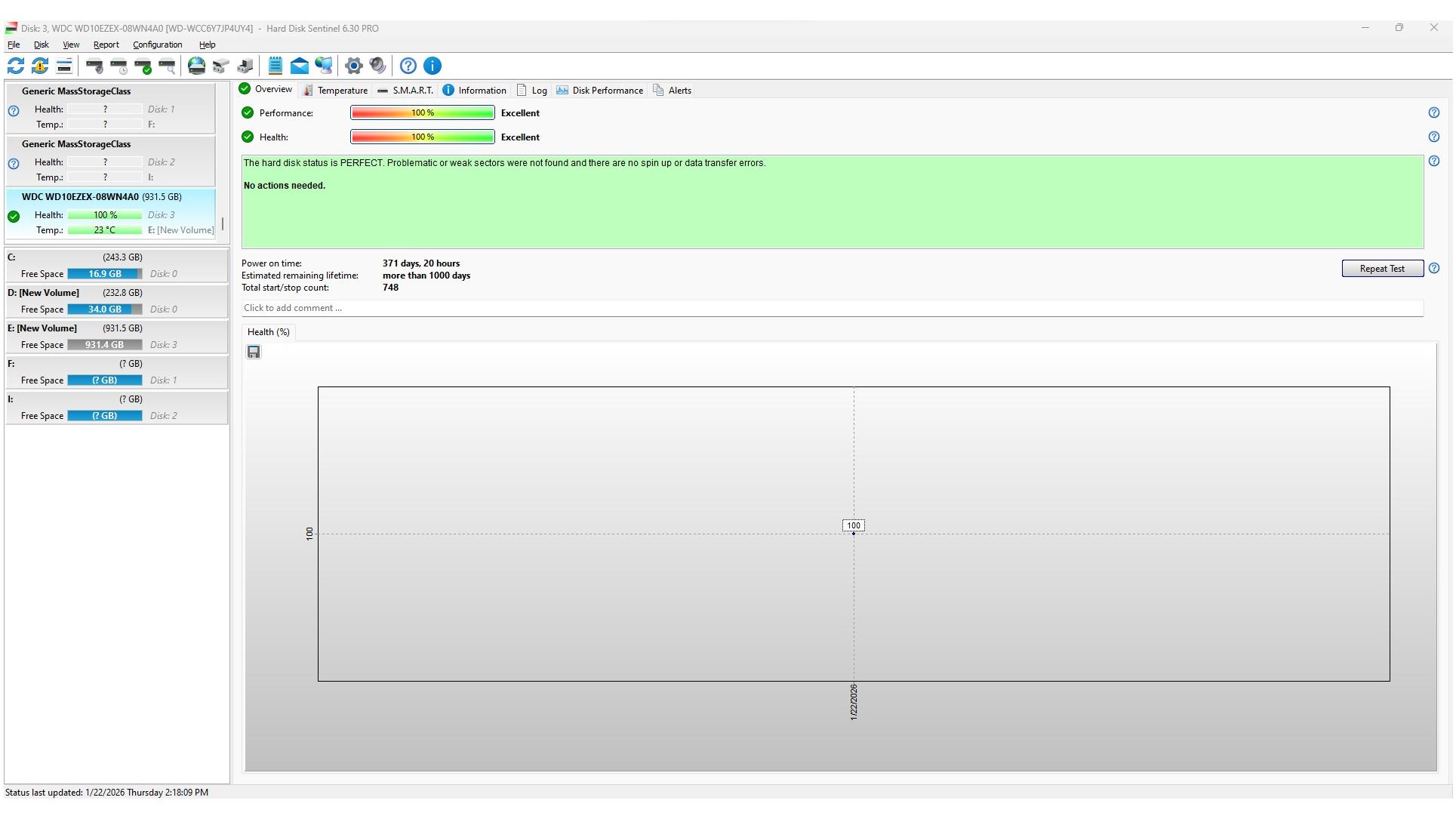 هارد کاملا سالم هست و تصویر تست سلامت هارد گویای همه چیز هست.