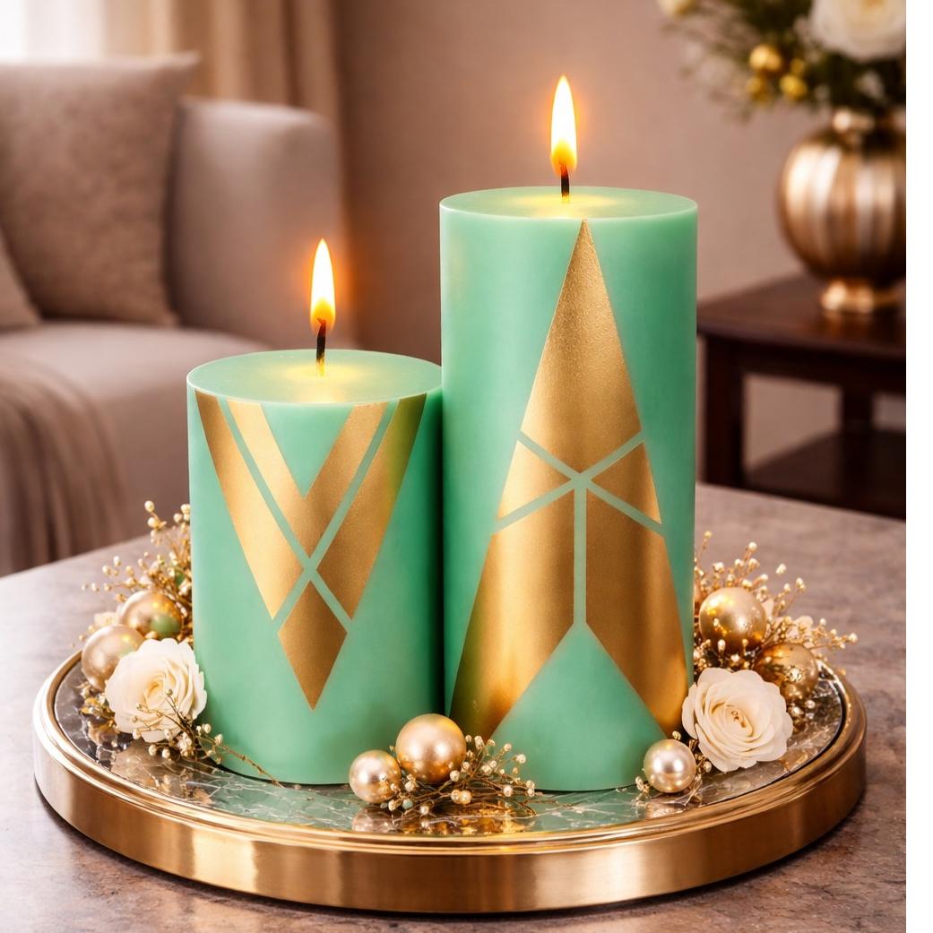ست شمع دکوراتیو نفیستاب | طرح آدم و حوا (سبزطلایی)