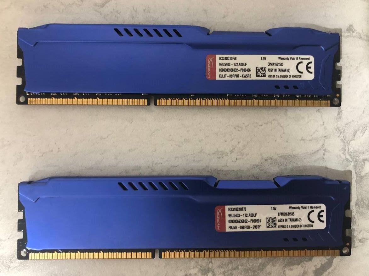 2عدد رم 8گیگ DDR3 کینگستون مدلHyperXFury 1866MHz