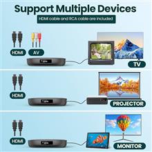 خروجی HDMI و AV: پخشکننده DVD با کابلهای HDMI و AV ارائه میشود، کابل اتصال HDMI کیفیت تصویر واضحتری را برای تلویزیون هوشمند، پروژکتور و مانیتور فراهم میکند، کابل AV از اتصال تلویزیون قدیمی پشتیبانی میکند.