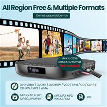 بدون محدودیت منطقهای: پخشکننده DVD چند منطقهای از فرمتهای دیسک مختلف از جمله (DVD±R/DVD±RW/VCD/Xivd/CD/CD-R/CD-RW/MP3/WMA) پشتیبانی میکند.