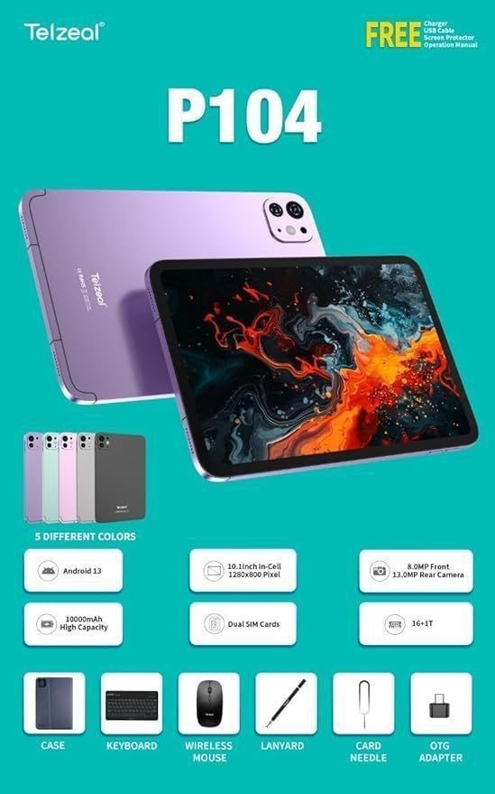 تبلت 10 اینچ Telzeal مدل P104 ظرفیت  1 ترابایت