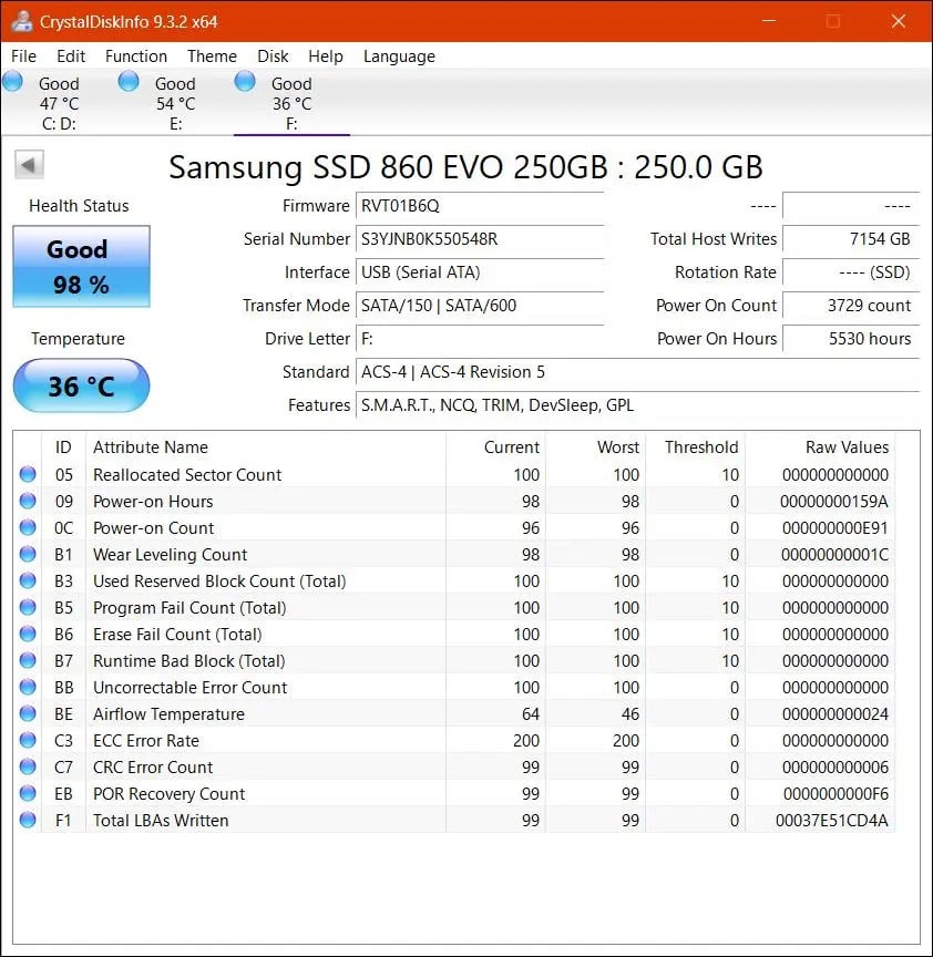 اس اس دی سامسونگ SSD SAMSUNG 860 EVO 250 GB در حد نو و کمکار موجوده. تست هاشم گذاشتم. کارکرد کامل یک سال بوده. اونم فقط ویندوز بالا بیاره