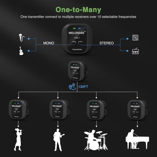 سیستم مانیتور داخل گوشی ما از فناوری جهش فرکانس UHF 500 مگاهرتز پیشرفته برای ارائه اتصال پایدارتر و مقاومتر در برابر تداخل نسبت به سیستمهای 2.4 گیگاهرتز استفاده میکند