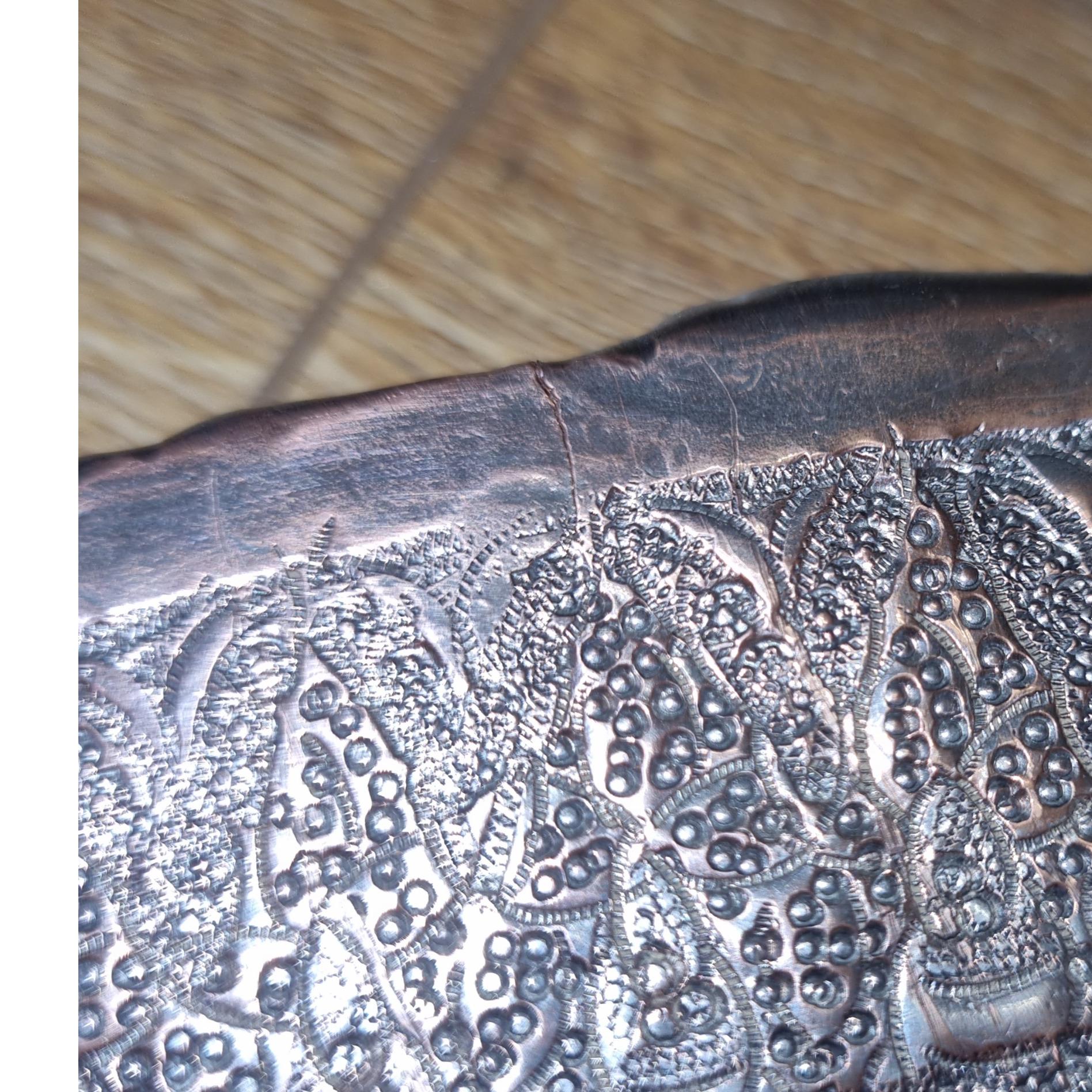 پشت کار آثار کمرنگی از قیر مشاهده میشه که نشان از قلم زنی با دست است