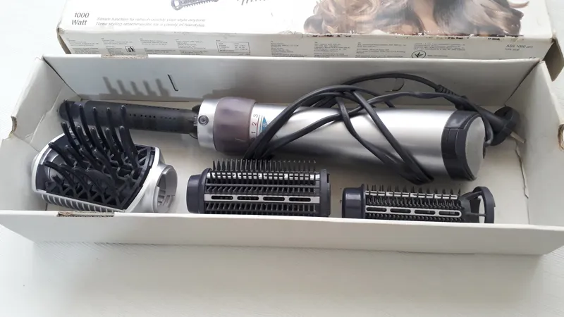 سشوار و حالتدهنده با بخار 1000 وات براون Braun جهت خشککردن و همچنین حالت دادن به موها و ایجاد فرهای درشت و ریز بسیار مناسب است. از مشخصات سشوار براون میتوان به قابلیت بخاردهی دستگاه اشاره کرد. جهت استفاده از عملکرد بخار ابتدا مخزن آب متصل به سر سشوار را باز کرده و آن را با آب شیر پر کنید. درب مخزن را بسته و مجددأ آن را به سر دستگاه محکم پیچ کنید. حال دکمه چرخشی سشوار را بر روی نشانگر تنظیم کنید. دو دقیقه منتظر بمانید تا آب بخار شود. با فشار دادن سر مخزن عملکرد بخار فعال میشود. عملکرد بخار قابلاستفاده با تمامی سریها است. همچنین با 1000 وات توان، بالاترین قدرت در بین سشوارهای موجود در بازار را دارا است. سشوار سالنی براون دارای سه سری مختلف جهت مرتب کردن و حالت دادن به موهاست که عبارتاند از برس گرد 25 میلیمتری، برس بزرگ 40 میلیمتری و برس شانهای حالتدهنده. سشوار براون به سه دمای قابل تنظیم مجهز است. دمای 1 مناسب برای عملکرد بخار و حجم کمی از موها است. همچنین از این دما میتوان برای خشککردن ریشه موها استفاده نمود. دمای 2 جهت خشککردن و حالت دادن حجم بالای مو مناسب است. از دمای 3 میتوان برای خشککردن اولیه موهای خیس به همراه برس حالتدهنده استفاده نمود. دکمه تنظیم دما بهصورت چرخشی طراحیشده است و بهراحتی قابل چرخش است. با چرخش دکمه چرخشی بنفش دمای مناسب را انتخاب کنید. پس از حالت دادن به موها، استفاده از دکمه سرد فوری موجب میشود مدلها بهصورت ماندگار و ثابت باقی بمانند. جهت استفاده از حالت باد سرد کافی است با استفاده از شست دست دکمه چرخشی را به سمت پائین بکشید تا باد سرد فعال شود.