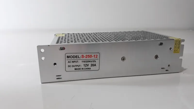 منبع تغذیه سوئیچینگ 12 ولت 20 آمپر با مدل S-250-12 شناخته میشود. این صنعتی 12 ولت 20 آمپر دارای ورودی ولتاژ 110 ولت الی 220 ولت است. فرکانس ورودی در این پاور ساپلای 12 ولت 20 آمپر، برابر 50 الی 60 هرتز میباشد. ولتاژ خروجی این پاور ساپلای برابر 12 ولت و جریان خروجی آن 20 آمپر است. این منبع تغذیه سوئیچینگ 12 ولت 20 آمپر دارای محافظتهای مختلف از جمله در برابر اتصال کوتاه، بار اضافی و ولتاژ اضافی است. این منبع تغذیه 12 ولت صنعتی از لحاظ عملکرد کارائی بالایی داشته و در فرآیند کار دمای پایینی تولید میکند.
