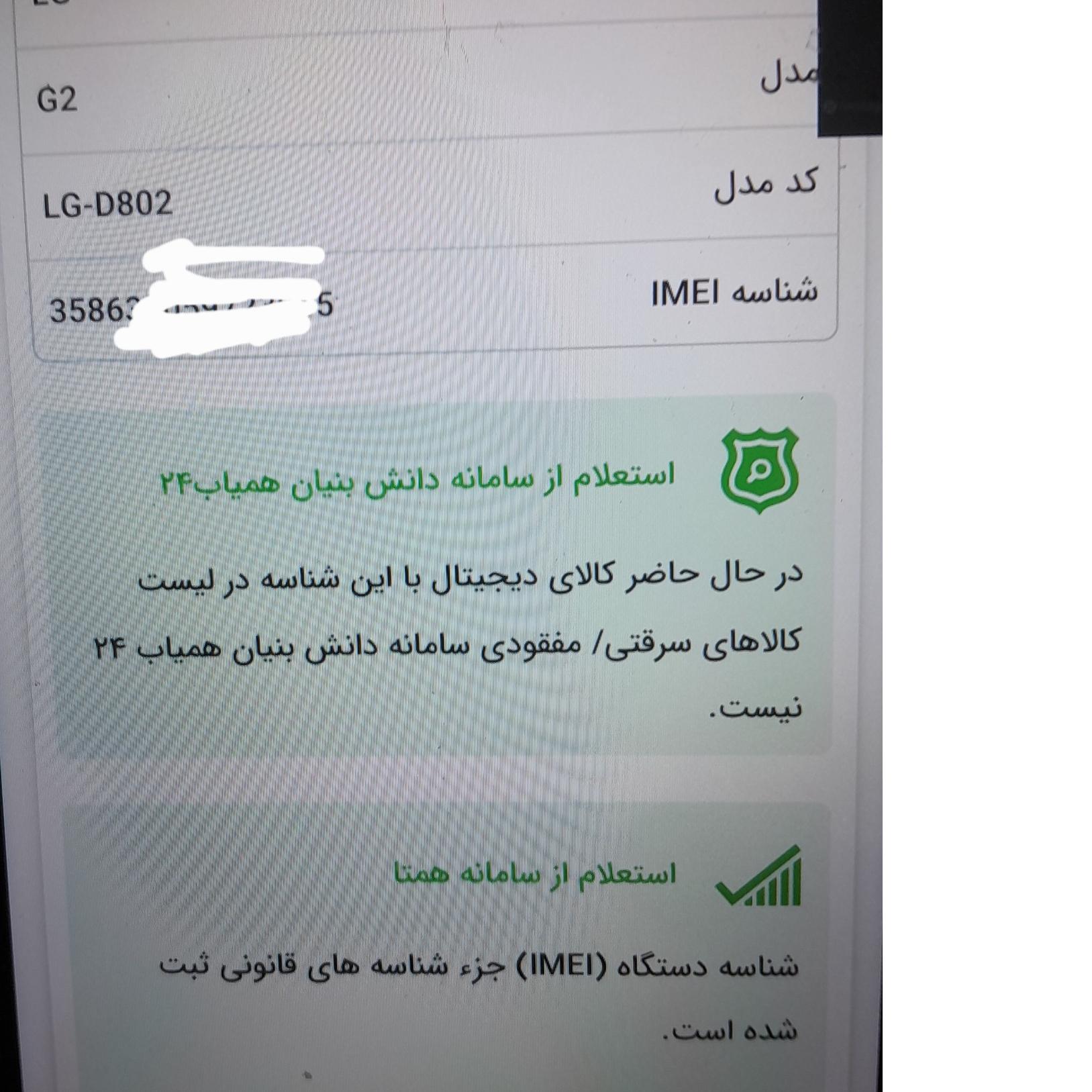 گوشی قدیمی الجی مدل g2صحیح و سالم و ثبت شده در همتا کارتون گوشی پیدا نکردم ولی وضعیت ریجستری توی عکسها هست اندروید 4 هست و فقط به عنوان گوشی ساده میشه استفاده کرد 32 گیگ حافظه داره و تک سیمکارته گزینه ها بالا همینجوری پر کردم قبل خرید سوالی بود بپرسید چون بعد مرجوعی به هیچ عنوان پذیرفته نمیشود قیمت یک گوشی ساده زدمش فقط خود گوشی موجوده و برای خریدار ارسال میشود