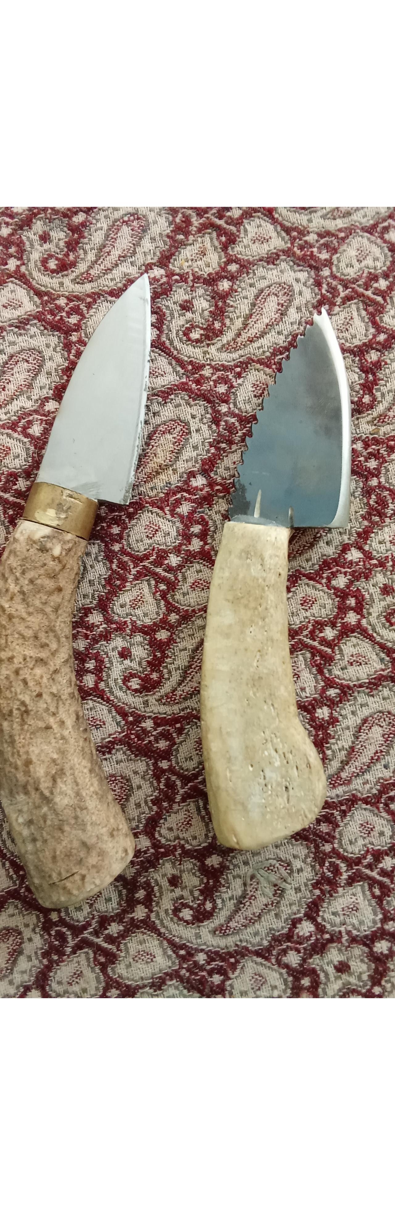 دوعدد چاقو دست ساز دسته شاخ گوزن و مغز شاخ قوچ وحشی تقاضای تخفیف نکنید قیمت منصفانه گزاشتم