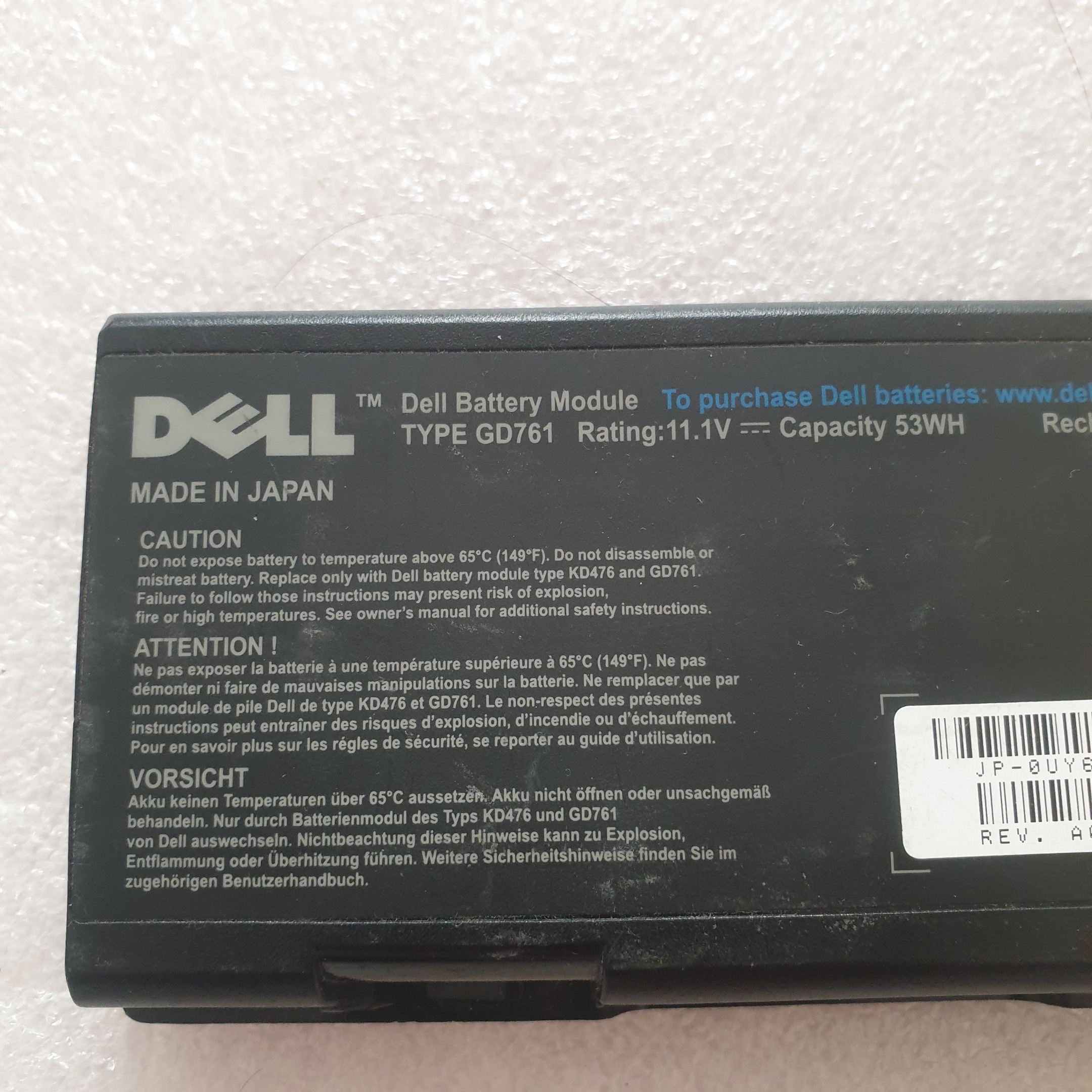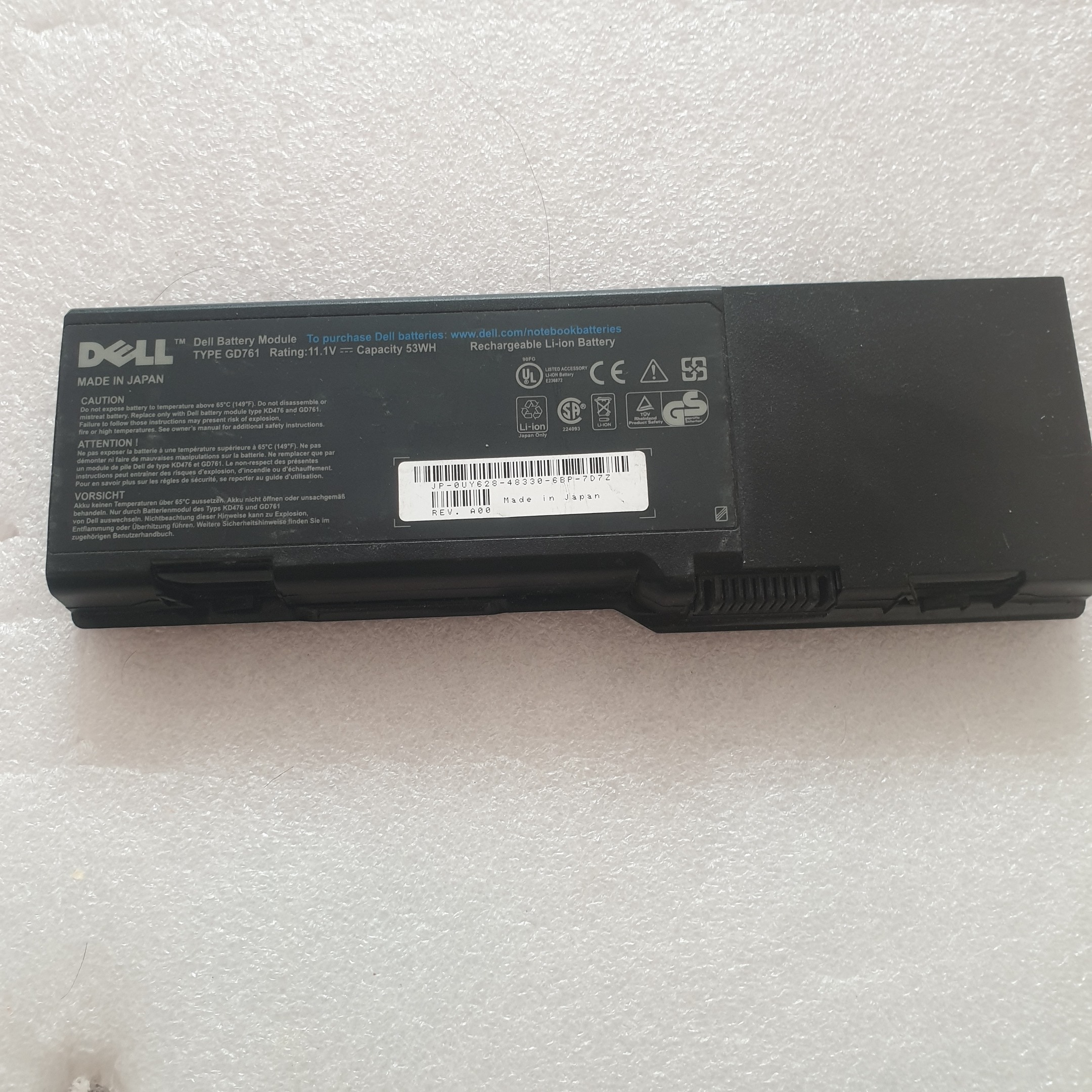 باتری لپ تاپ ژاپن دل Type GD761 توان 53 وات ساعت