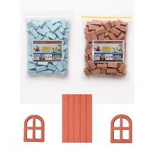 آجرهای مینیاتوری خانه سازی و ماکت سازی 400عدد و دو عدد پنجره و یک عدد درب خانه مینیاتوری ، همگی از جنس سنگ مصنوعی نسوز و قابل شستشو