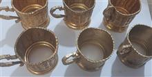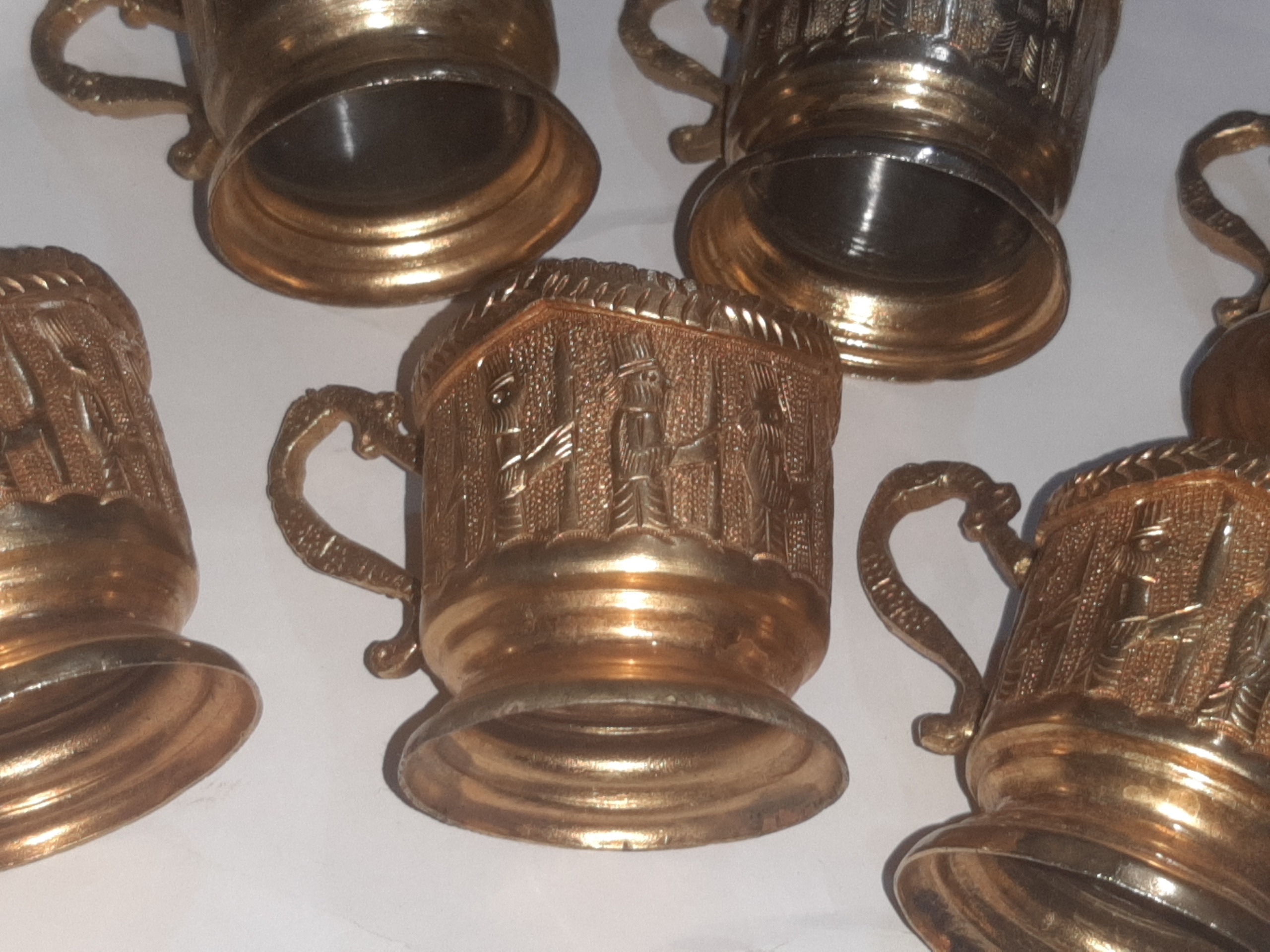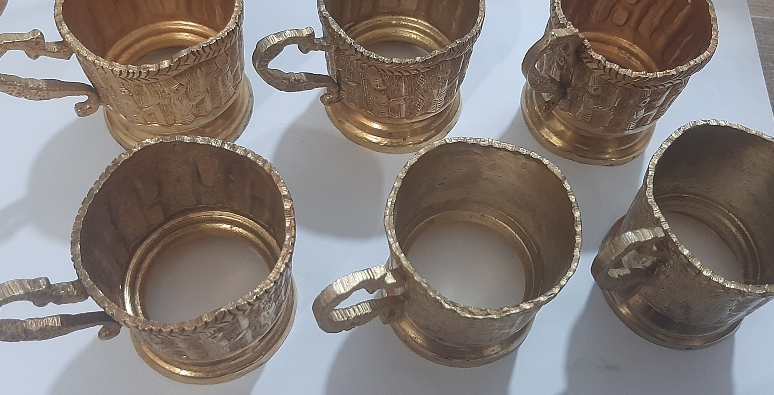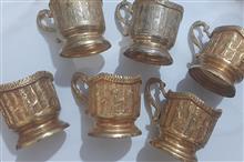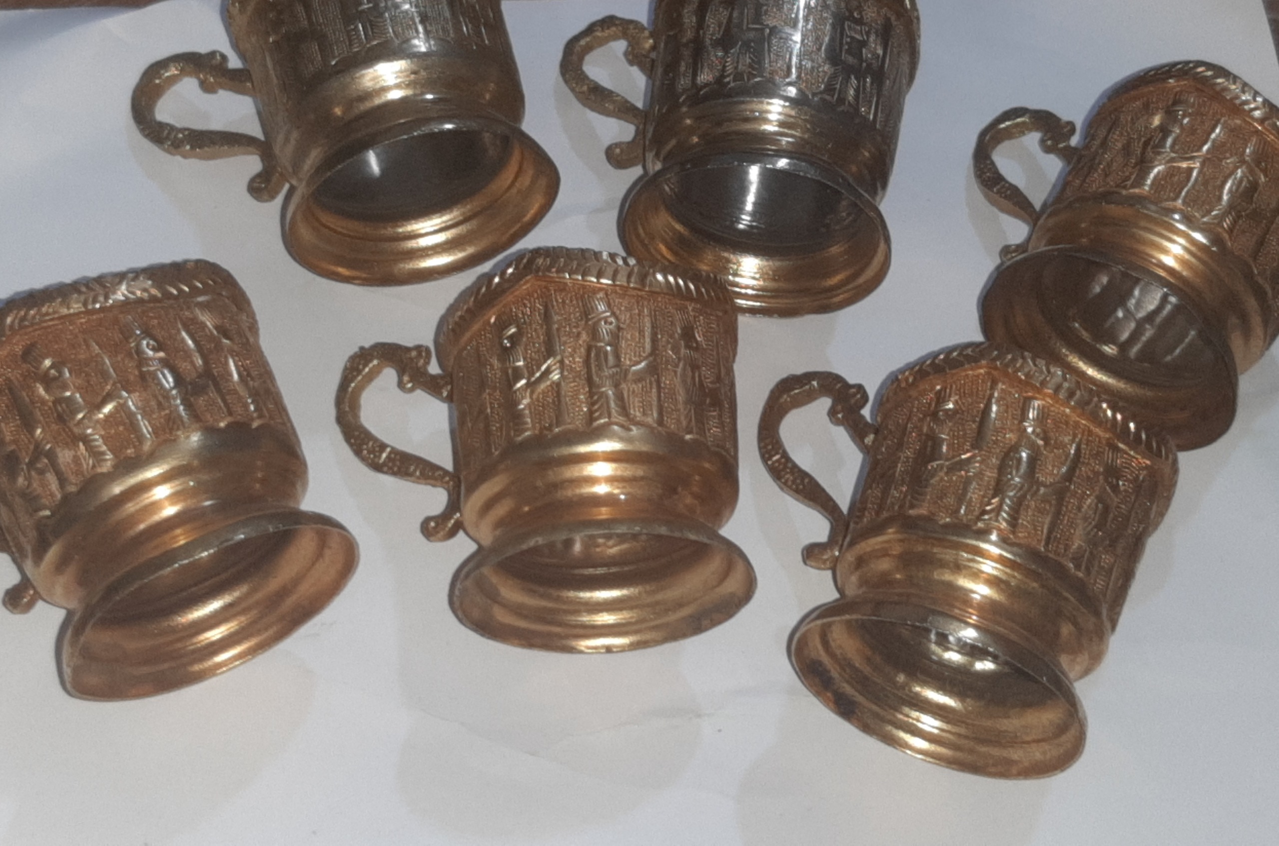 6 عدد پایه استکانی برنجی انتیک و قدیمی قلم زنی ریز بسیار زیبا و کلکسیونی