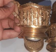 ست انگاره یا گالش جا استکانی قدیمی قلم زنی برنجی